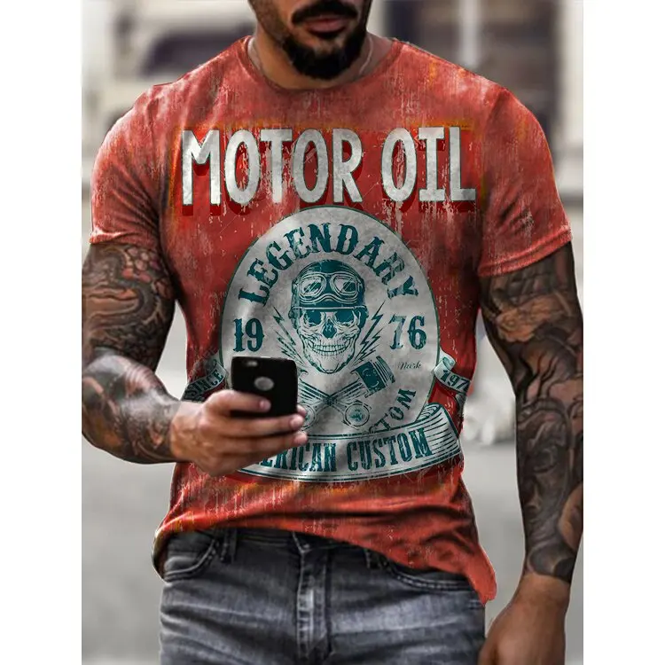 Футболки унисекс, большие размеры, летние, с рисунком мотора, масла...