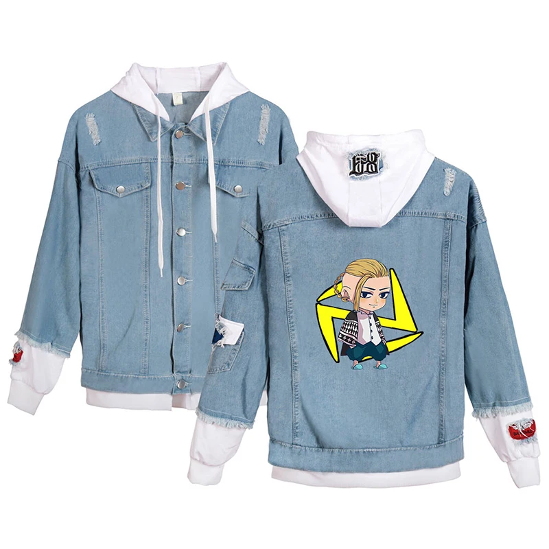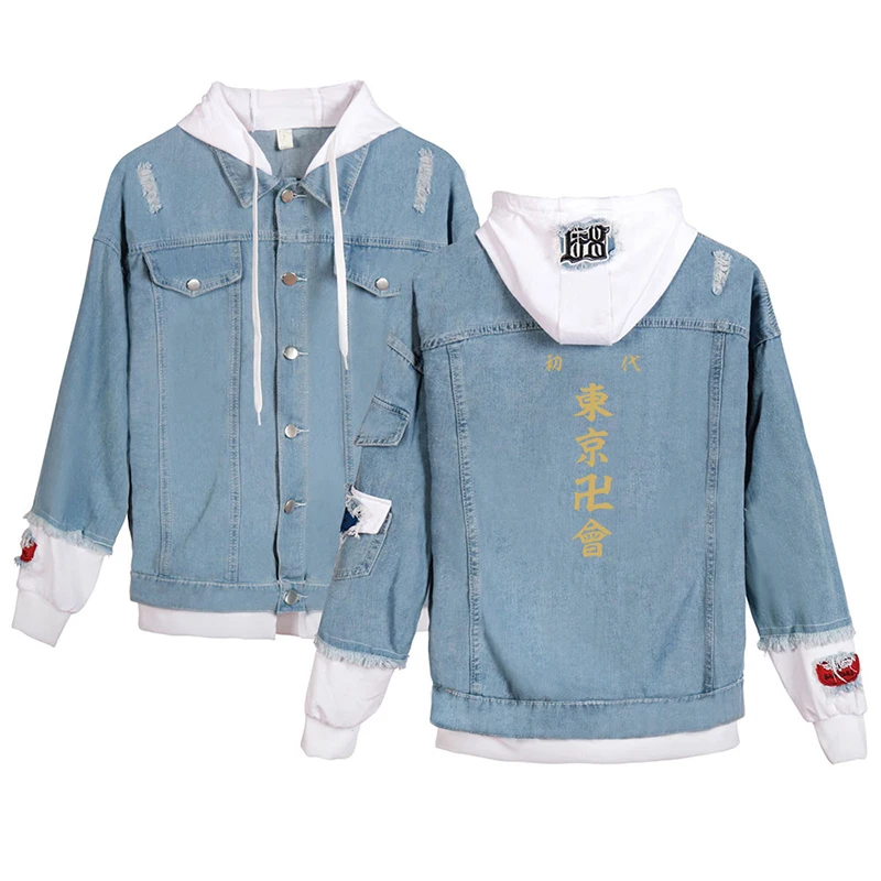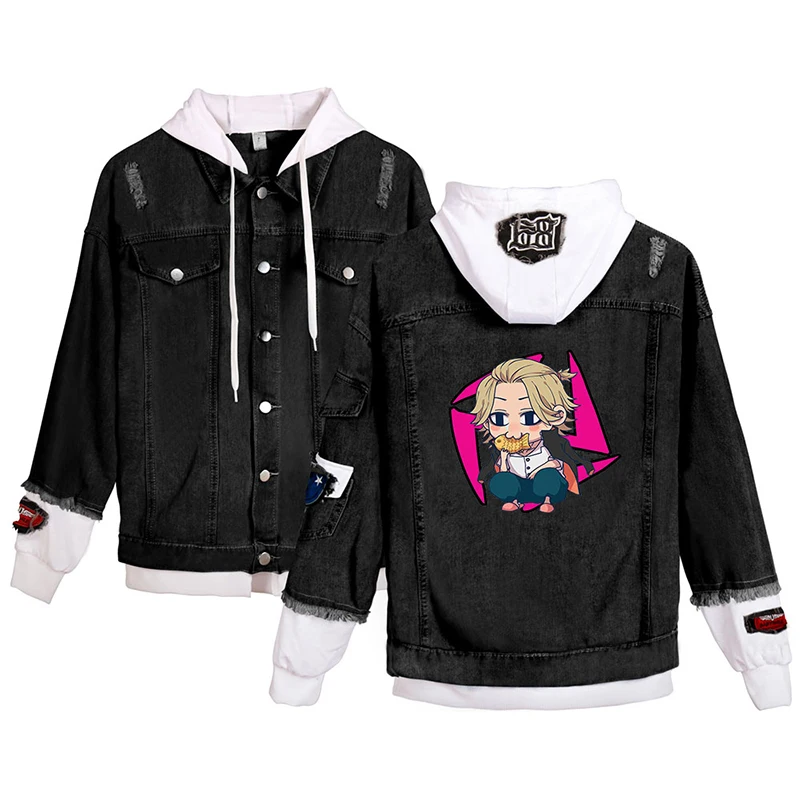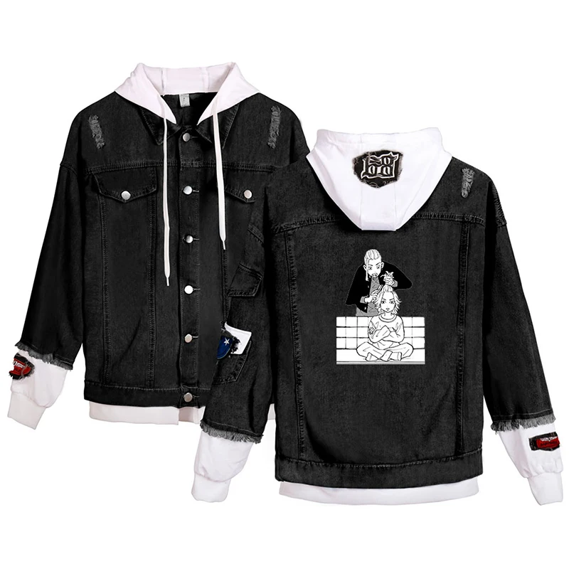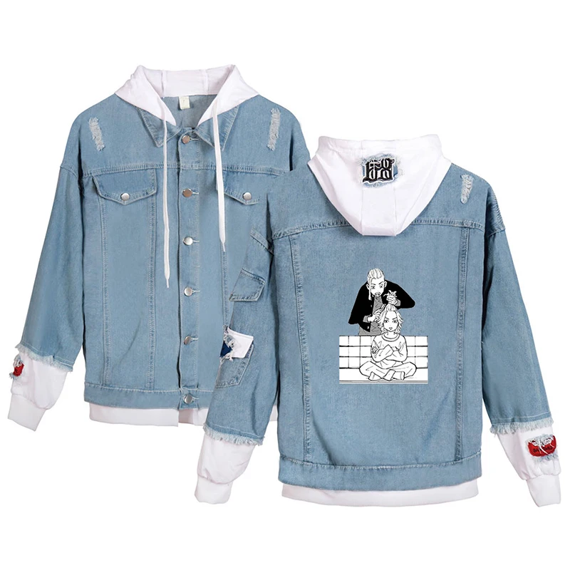 Японская джинсовая куртка с рисунком аниме Токио майгера, модные мужские и женские свитшоты с длинным рукавом, джинсовые куртки с имитацией двух частей, толстовки в стиле Харадзюку