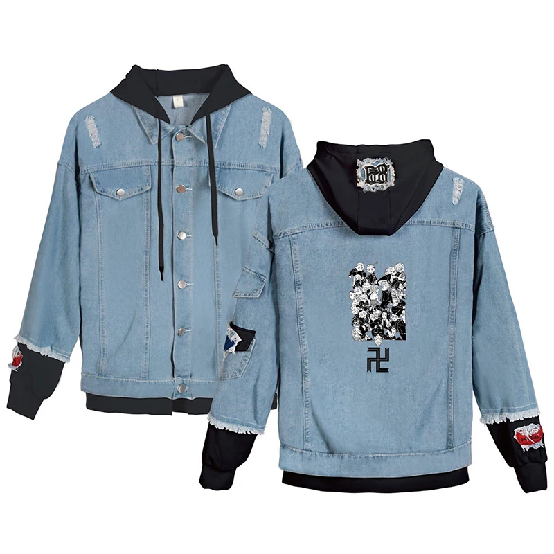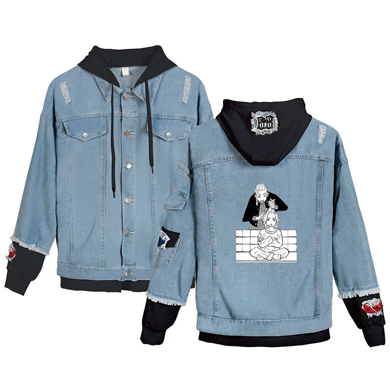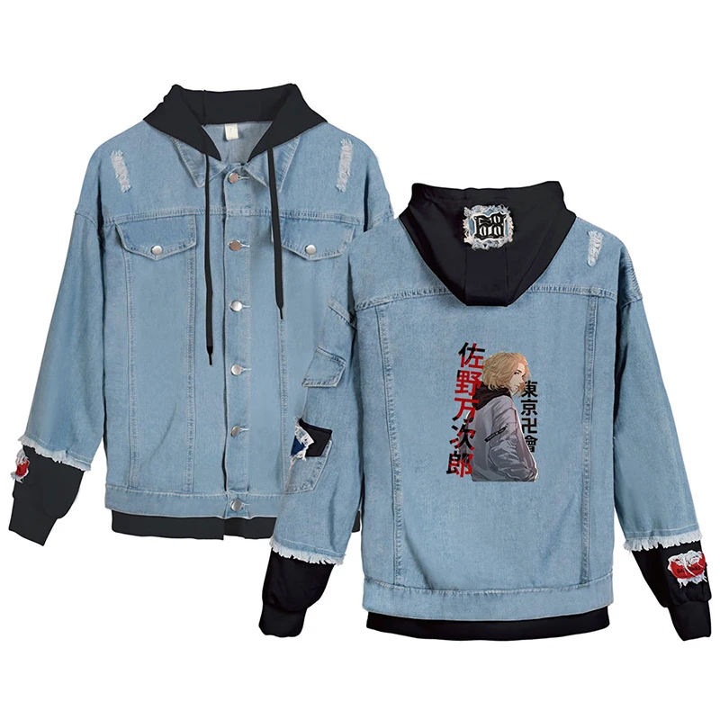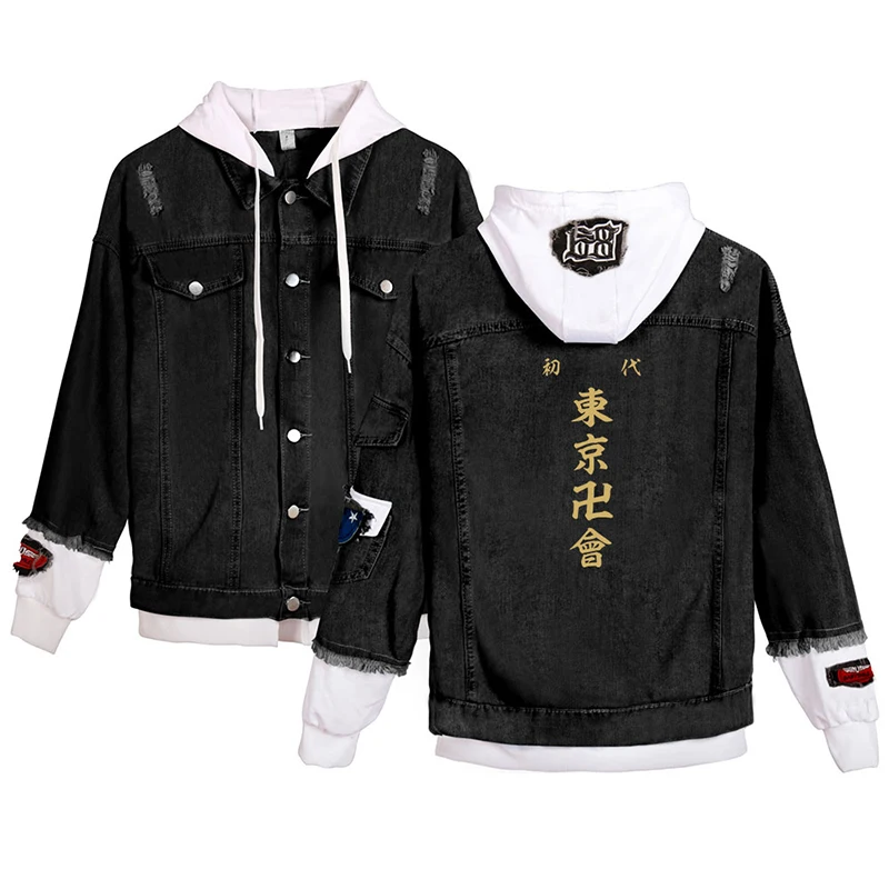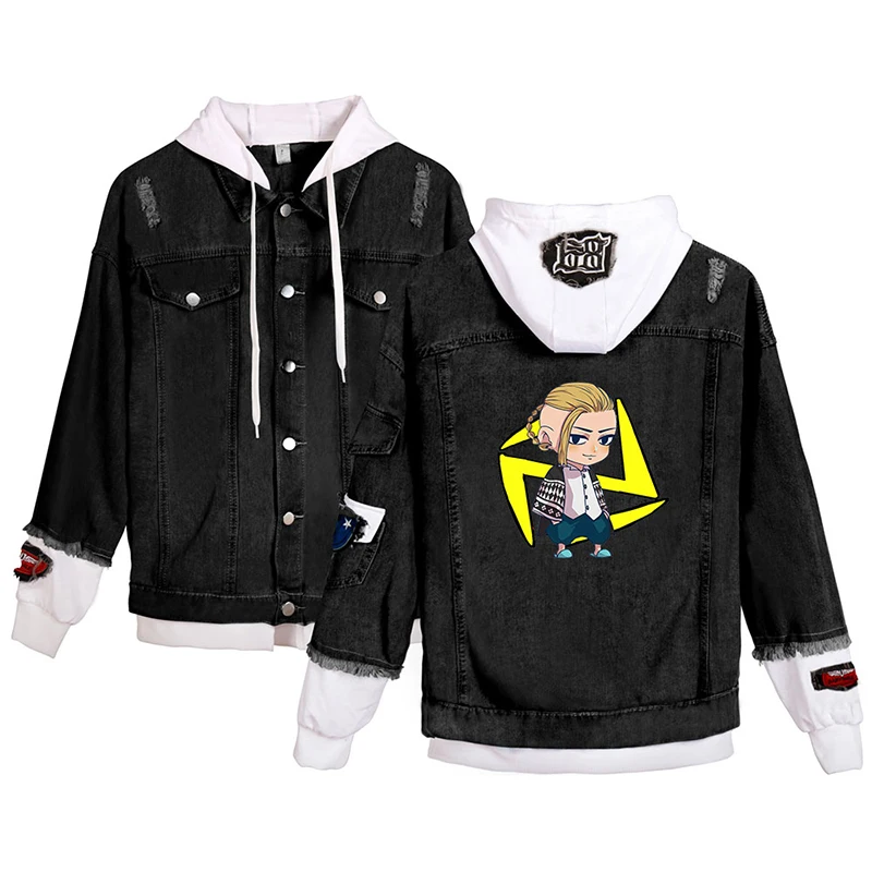 Японская джинсовая куртка с рисунком аниме Токио майгера, модные мужские и женские свитшоты с длинным рукавом, джинсовые куртки с имитацией двух частей, толстовки в стиле Харадзюку