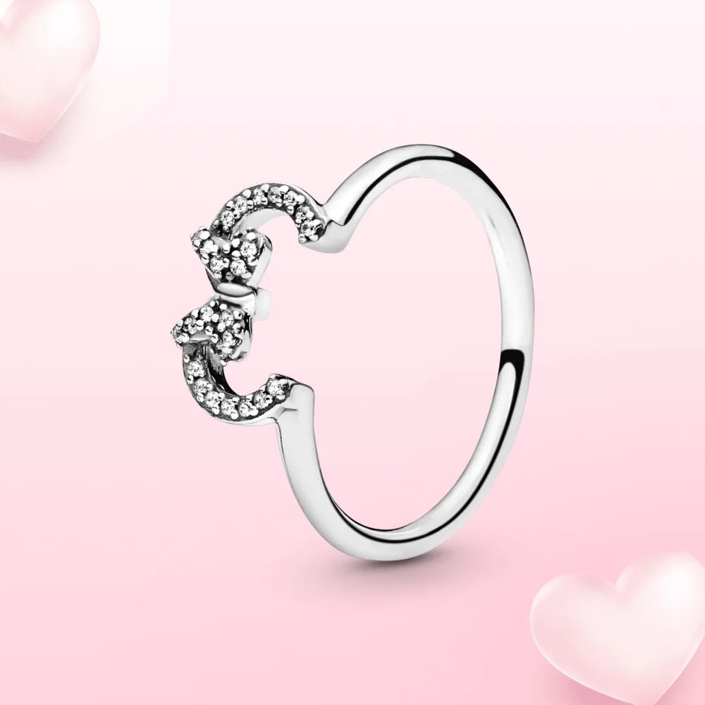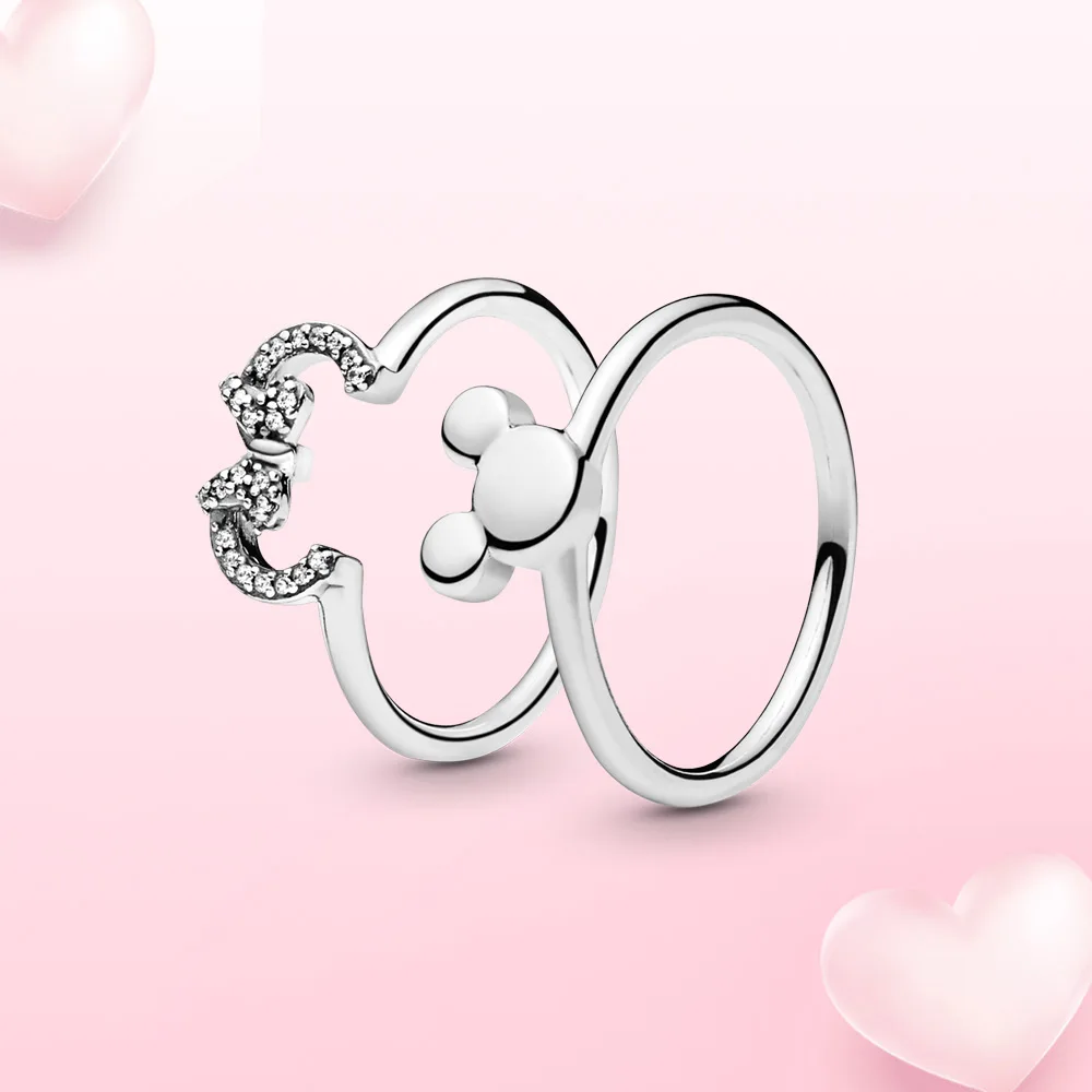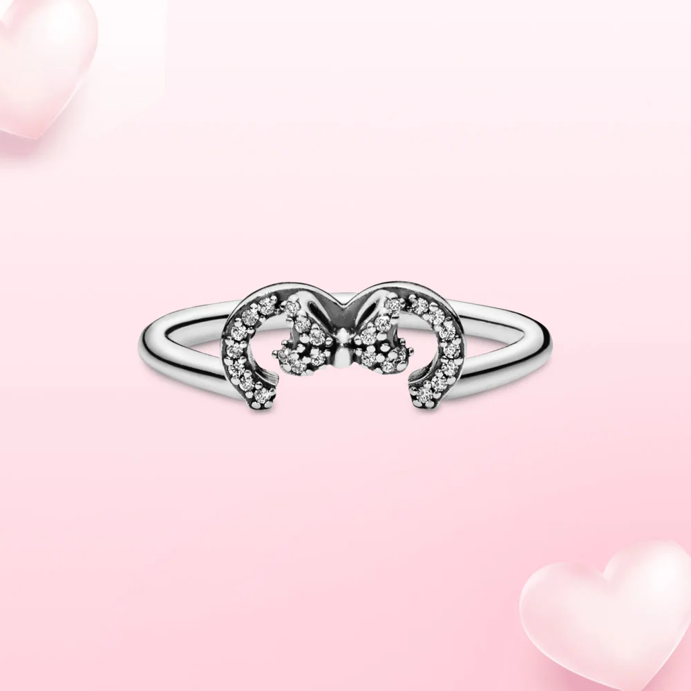 Женское кольцо из серебра 925 пробы, с бантом и мышью