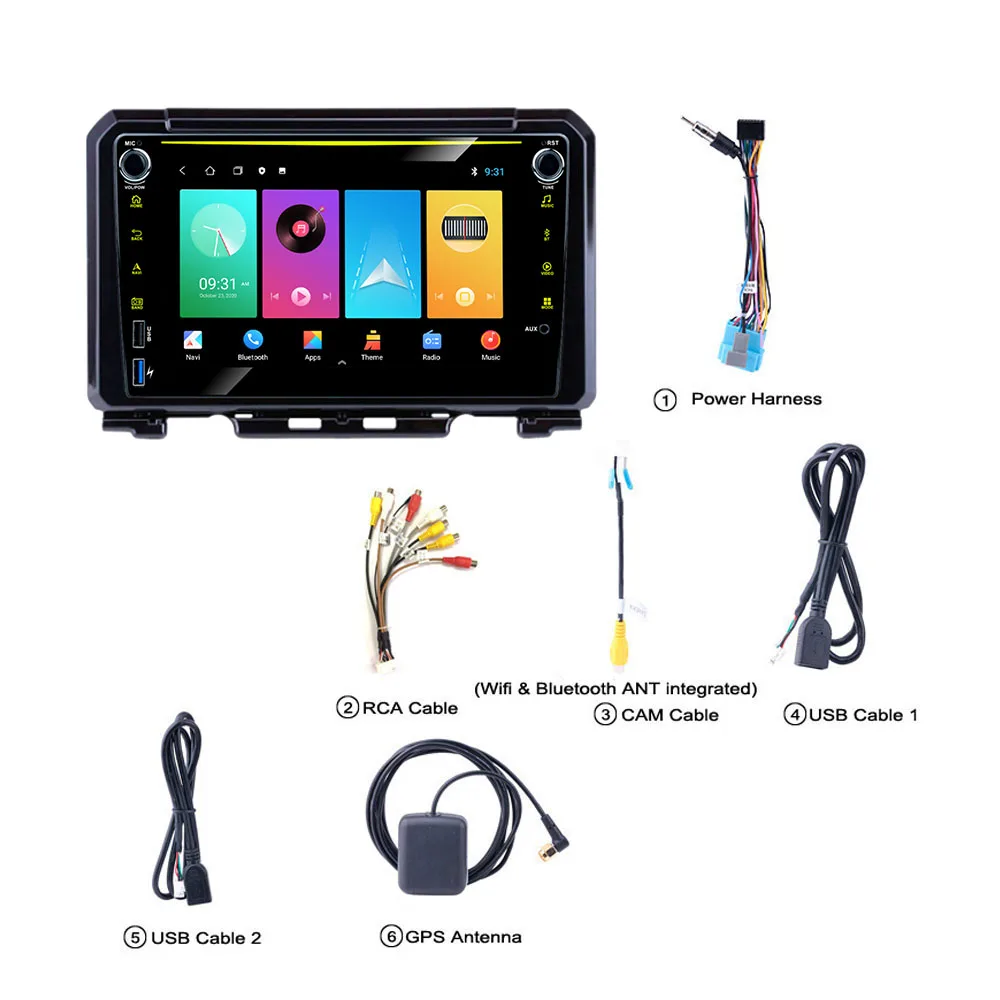 1 x Автомагнитола Suzuki Jimny Android1 x Кабель Питания1 Антенна GPS1 вход для камеры1 вход и выход RCA2 x USB-кабеля1 x Инструкция по эксплуатации