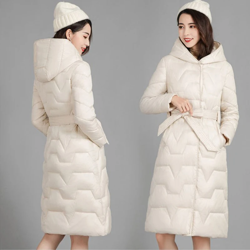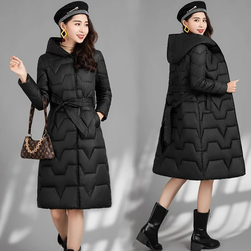Модный зимний жакет для женщин пояс с капюшоном плотная пуховая жен...