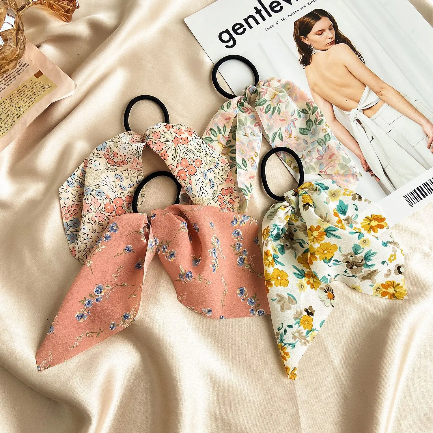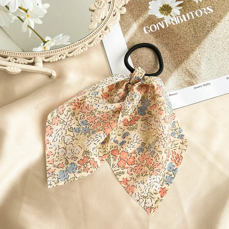 Резинки для волос, шифоновые, с цветочным принтом, эластичные, Женс...