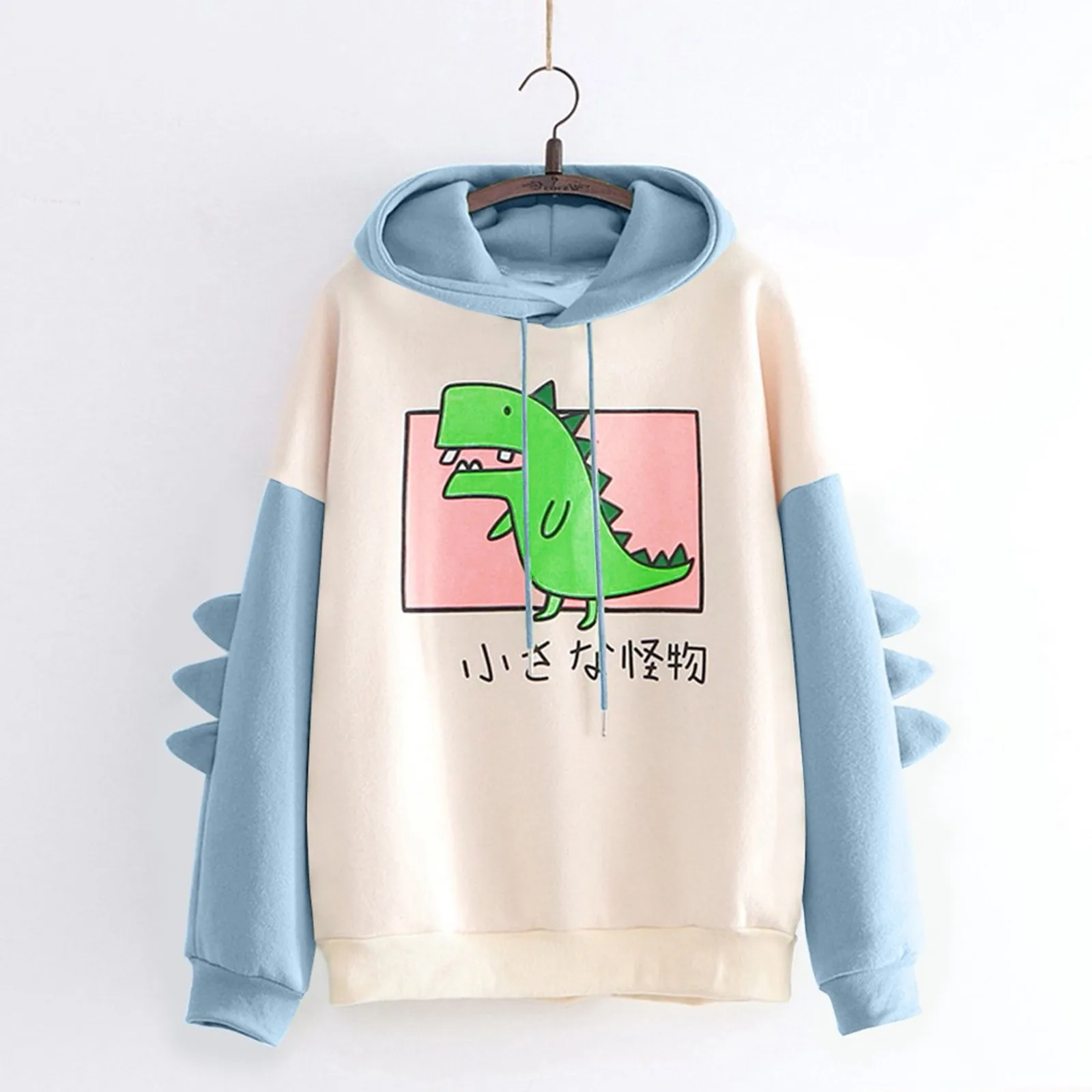 Толстовка Женская с динозавром, зимняя, большого размера, с мультяшным принтом