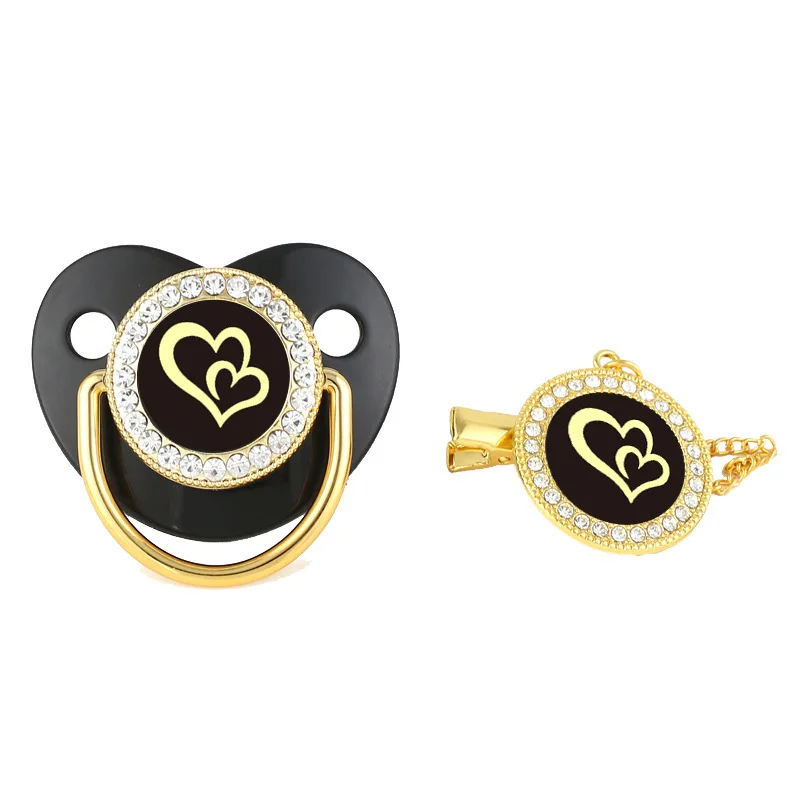 Черного и золотого цвета с блестками детская пустышка на цепочке с ...