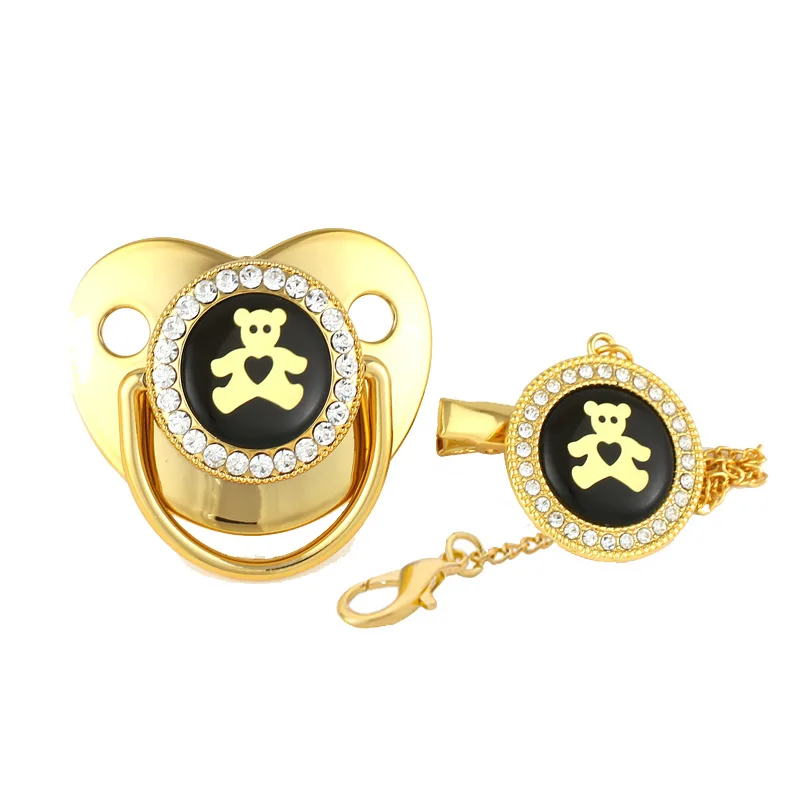 Медведь мультфильм детские соски и соски клипсы Золотой Bling BPA б...