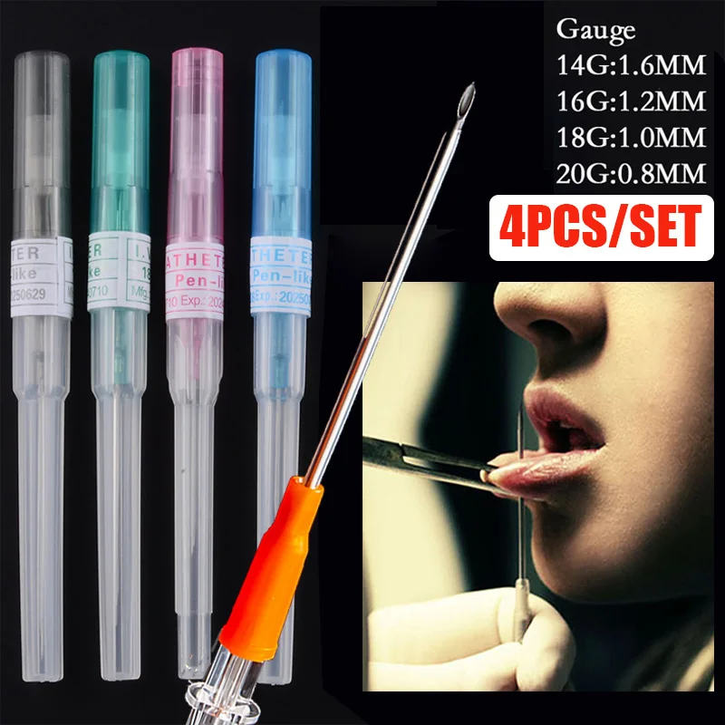 0,8-1,6 мм иглы для пирсинга тела, катетер, катетер, инструмент из хирургической стали, стерилизованная татуировка