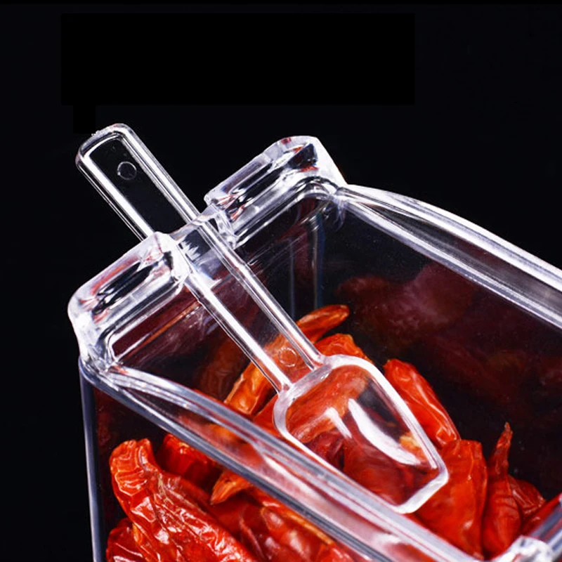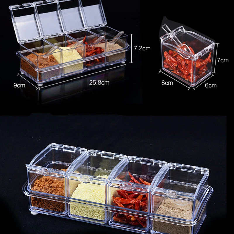 Кухонные принадлежности прозрачная приправа коробка четыре сетки приправа коробка четыре в одном с ложкой приправа банка набор, лучшие в коробке приправы, простой прозрачный цвет, минималистский стиль до крайности. Прозрачный материал простой и простой. Уплотнение хорошее, и нет беспокойства о безопасности приправ. Четыре комбинации, больше вариантов, для ваших потребностей в приготовлении пищи. Каждая маленькая коробка поставляется с маленькой ложкой, которая облегчает измерение в любое время.