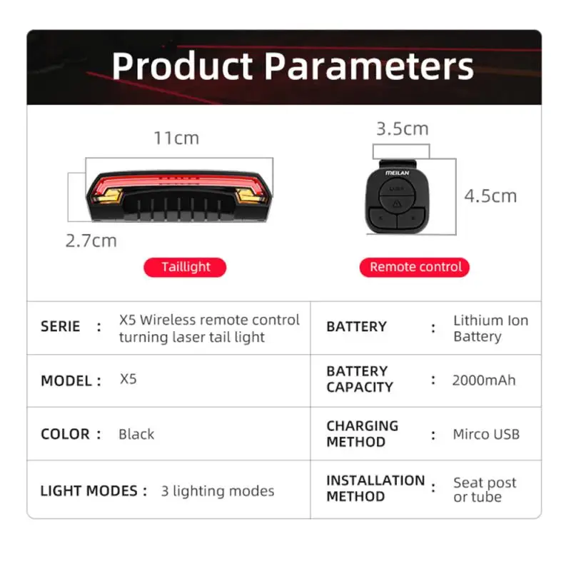 Продукт: умный задний фонарь с дистанционным управлением MEILAN X5