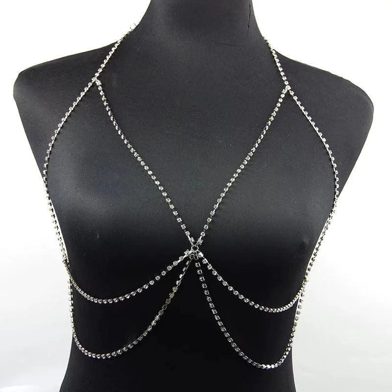 Блестящий хрустальный бюстгальтер для бикини, живота, тела, многослойная цепочка через плечо, Женское Ожерелье, цепочка для тела со стразами, бюстгальтер, ювелирные изделия, подарок