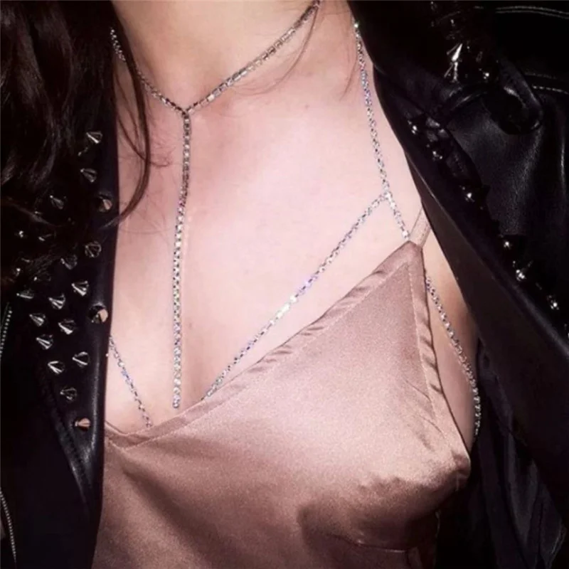 Блестящий Кристалл Бикини Бюстгальтер живот тело многослойная цепочка крест тела леди цепочка для тела со стразами ожерелье бюстгальтер ювелирные изделия подарок