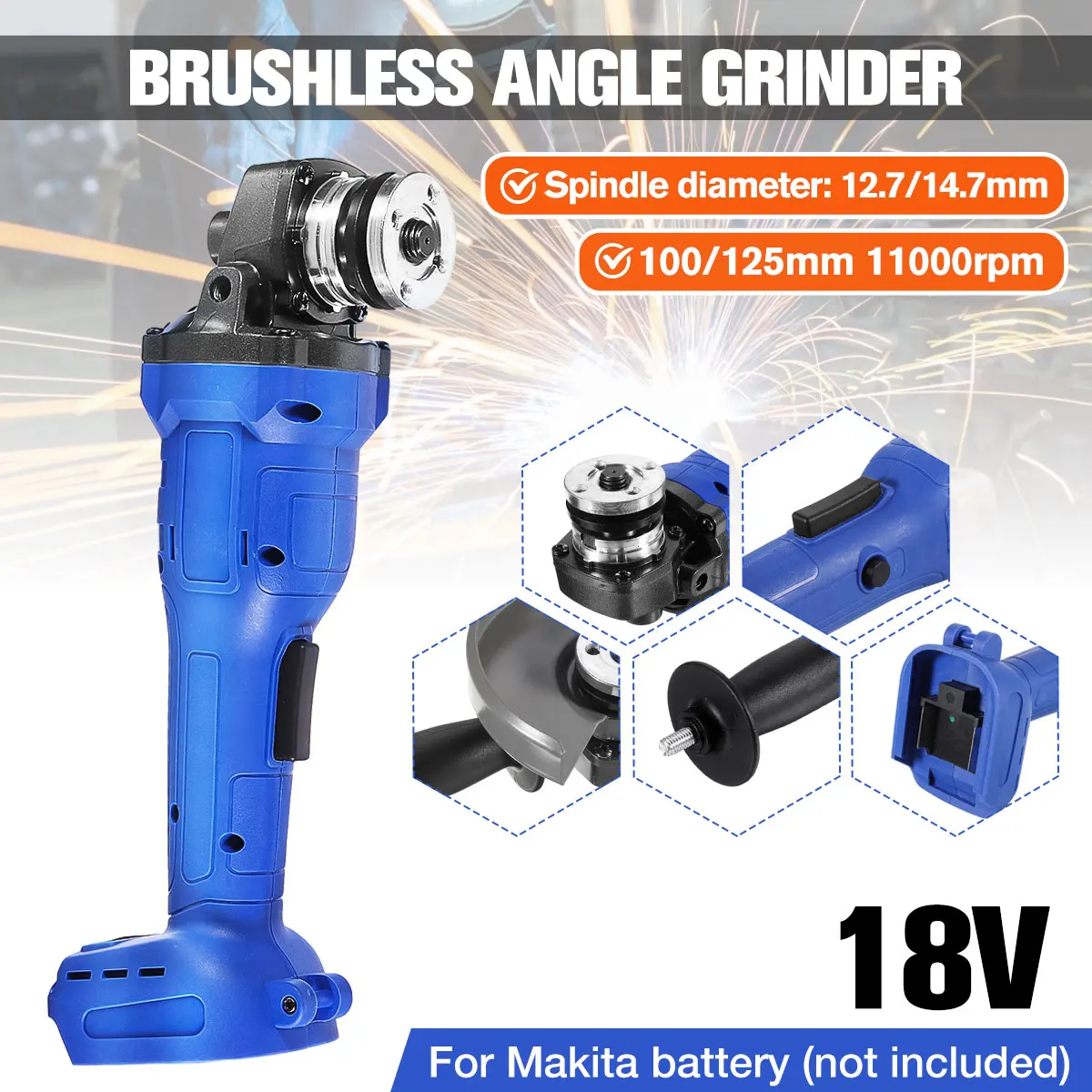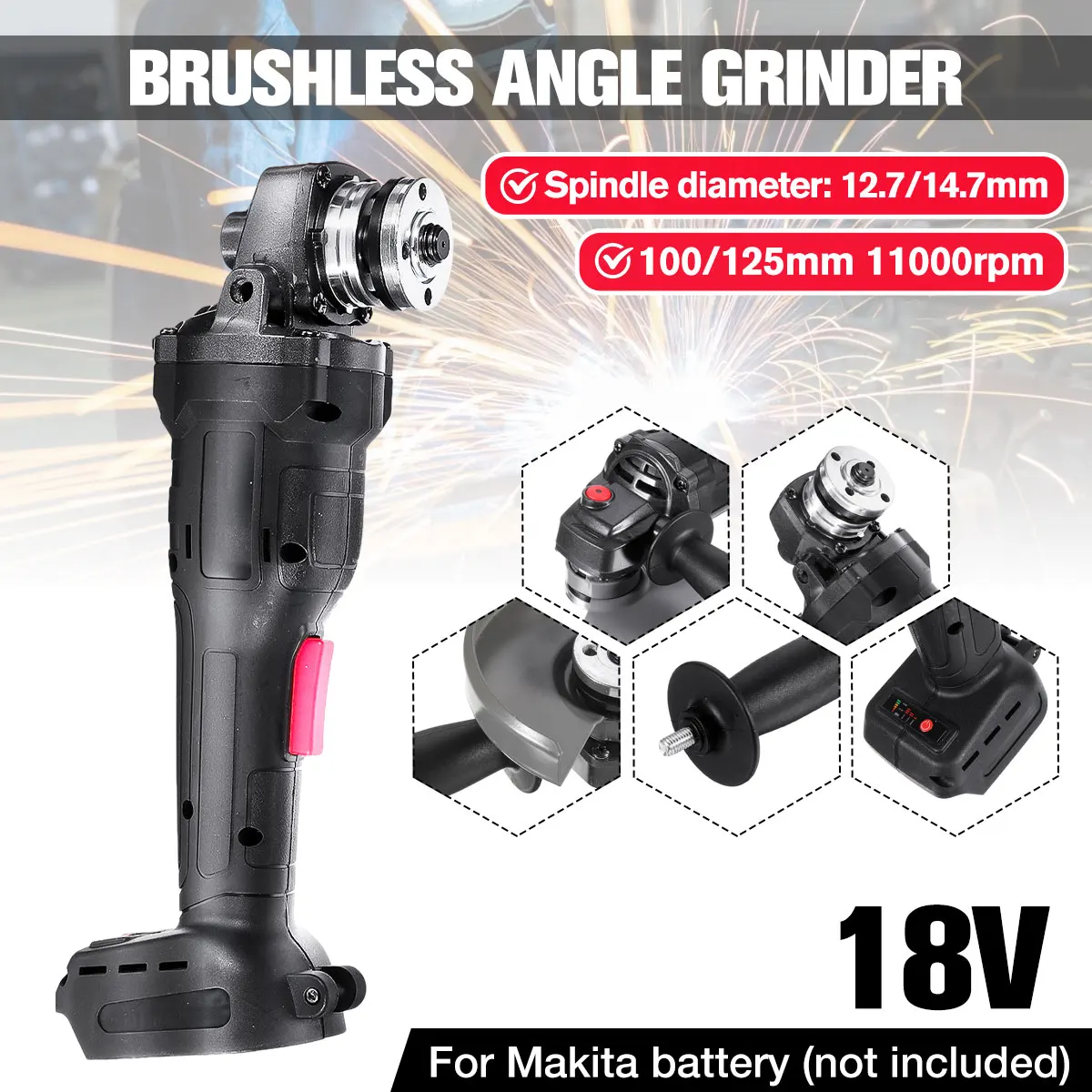 Беспроводная ударная угловая шлифовальная машина, 18 в, 125 мм