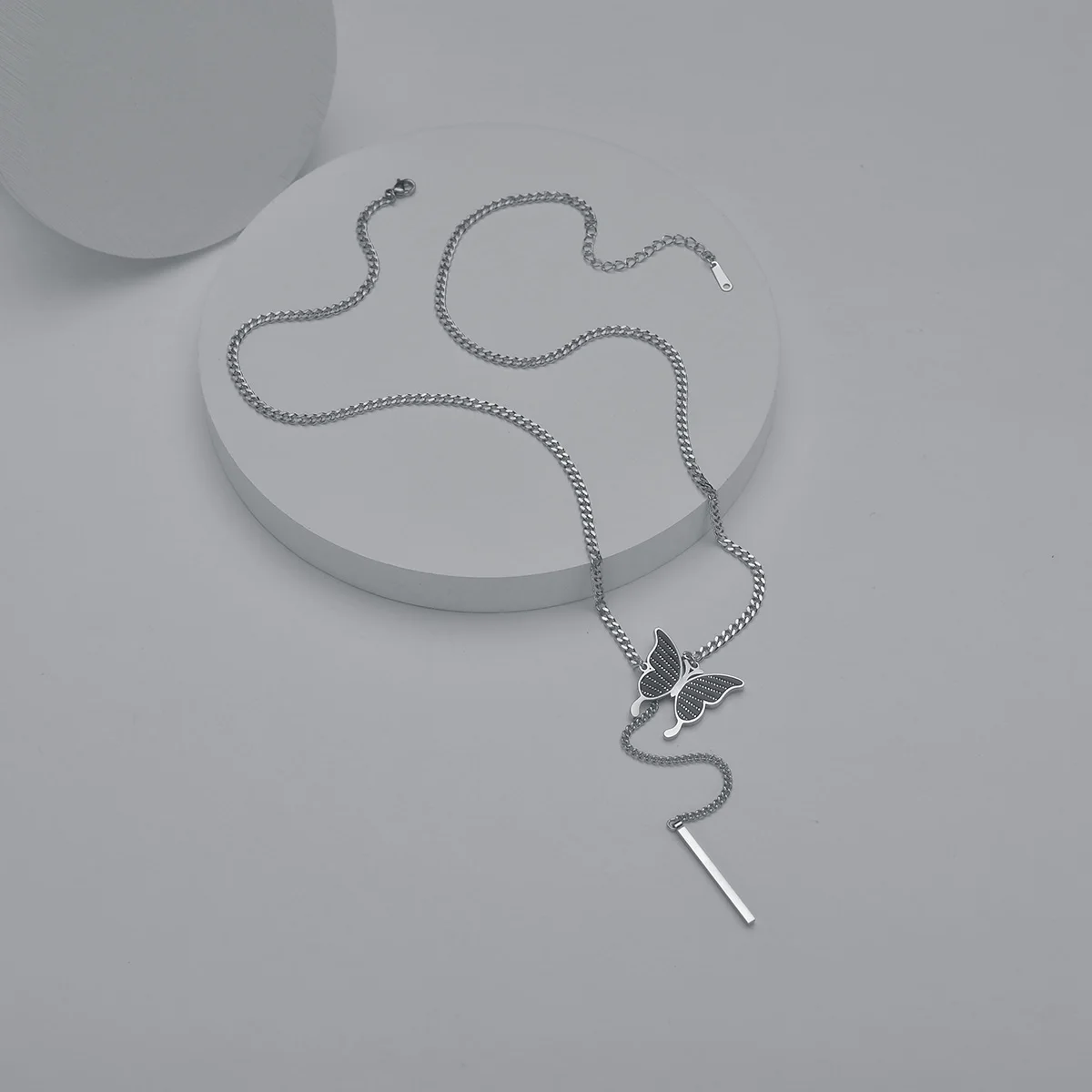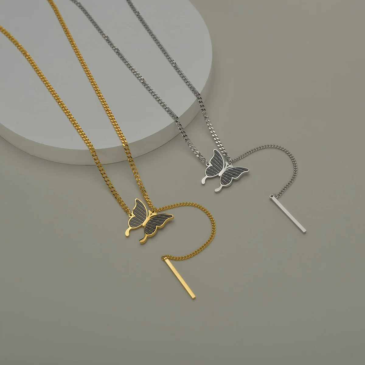 Featurebutterfly pendant necklace ,cuban chain thin Cylinder necklace