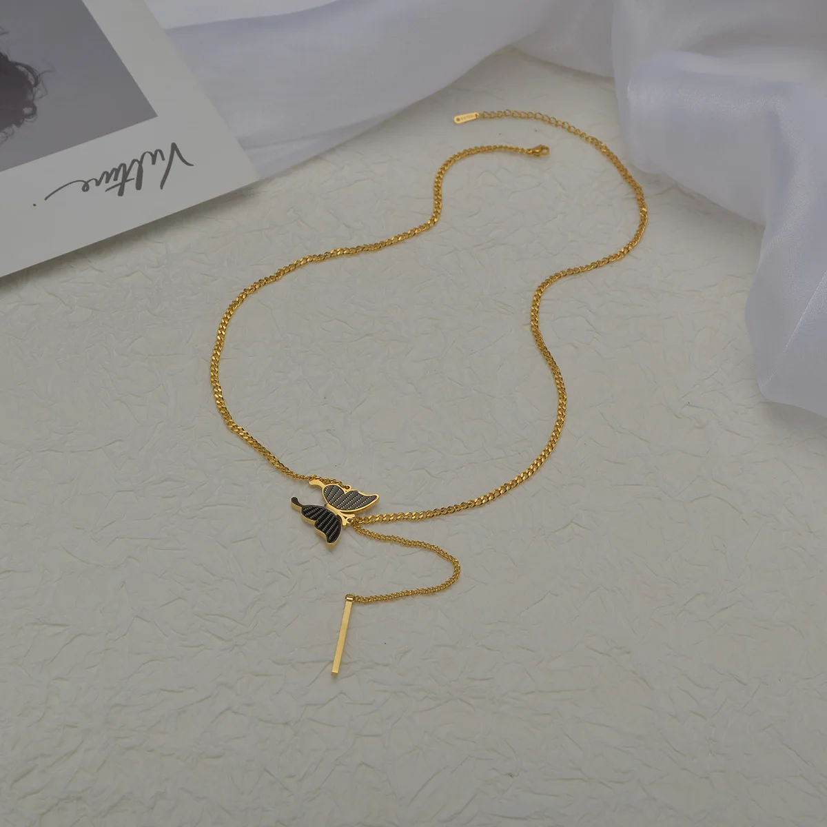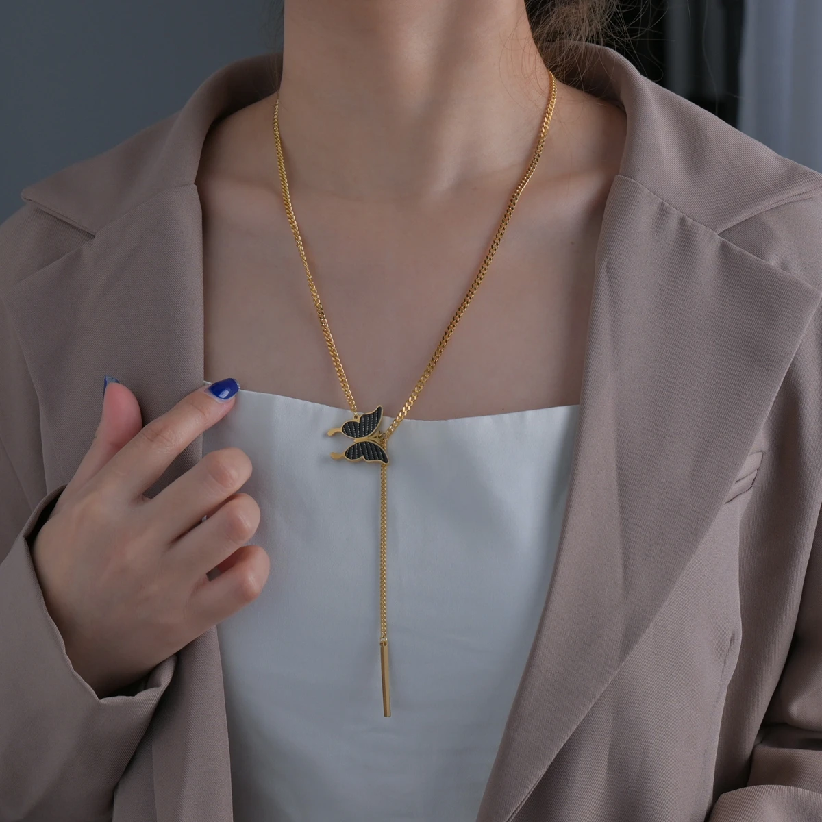 Название:Goxijite 2021 элегантный женский кулон-бабочка ожерелье из нержавеющей стали кубинская цепочка тонкий цилиндр ожерелья ювелирные изделия подарок