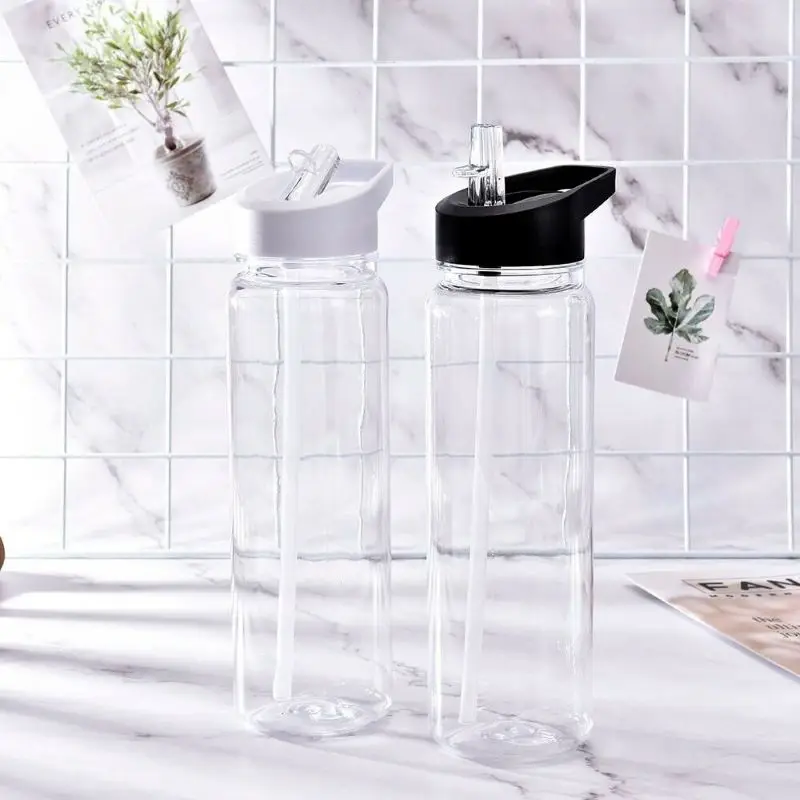 Пластиковая Спортивная бутылка из PS материала, прозрачная соломенн...
