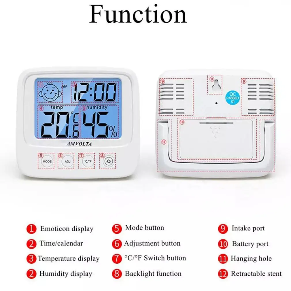 4. Более здоровая среда: Этот термометр-гигрометр с контролем температуры и влажности обеспечивает надлежащий контроль влажности в помещении хорошо подходит для кожи, аллергенов и других видов здоровья.