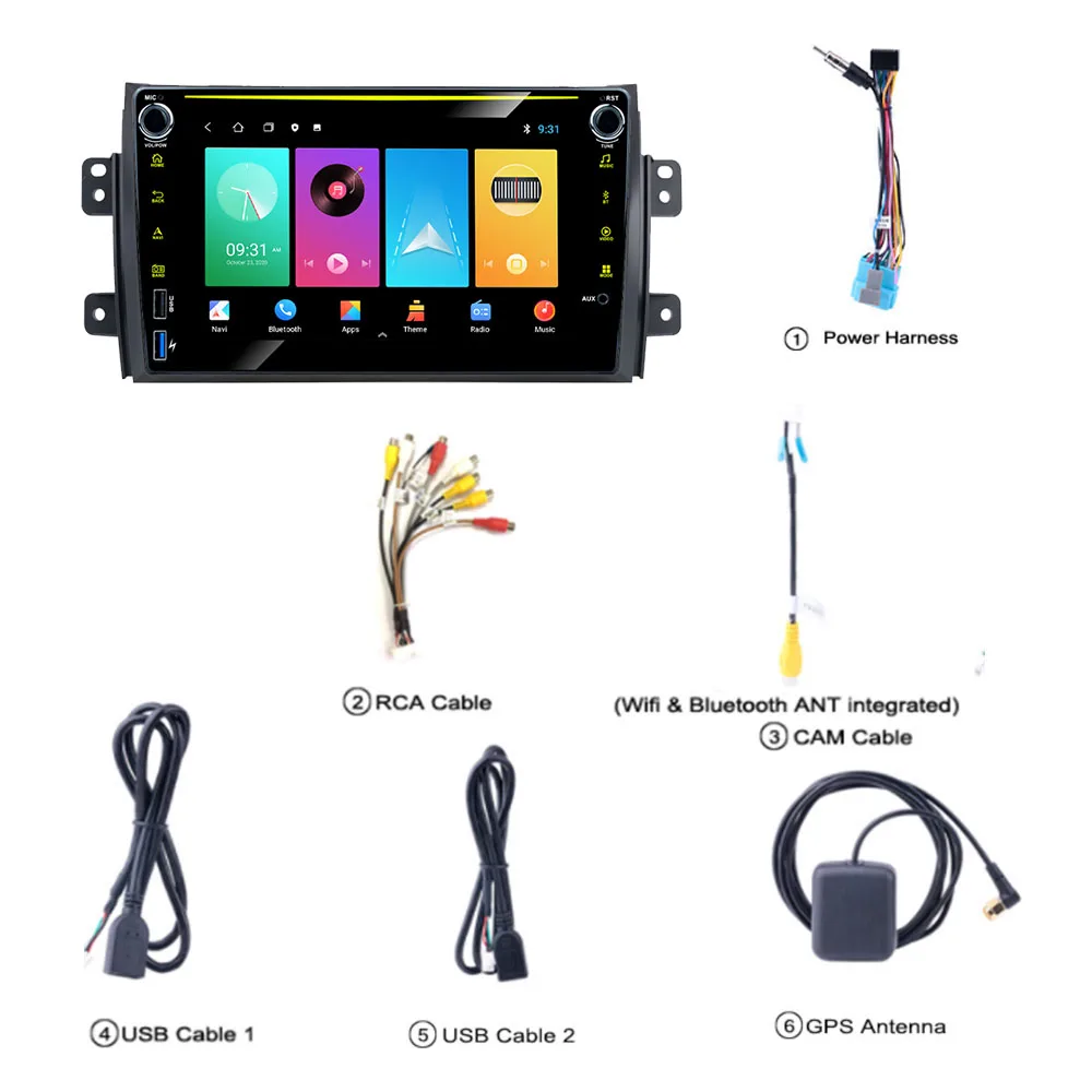 1 х Suzuki SX4 Android автомобильное радио1 х Кабель питания1 x Антенна GPS1 x вход камеры1 х RCA вход и выход2 x USB кабельРуководство по эксплуатации-1 шт.