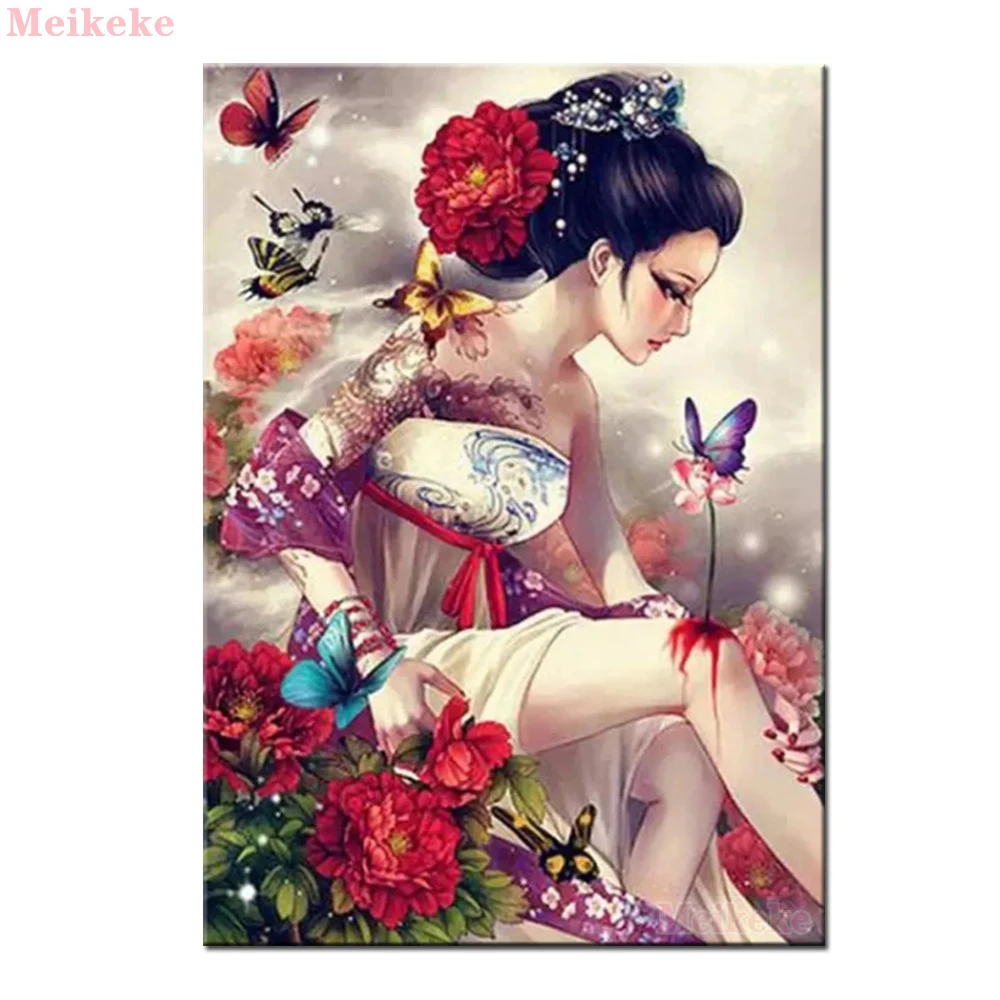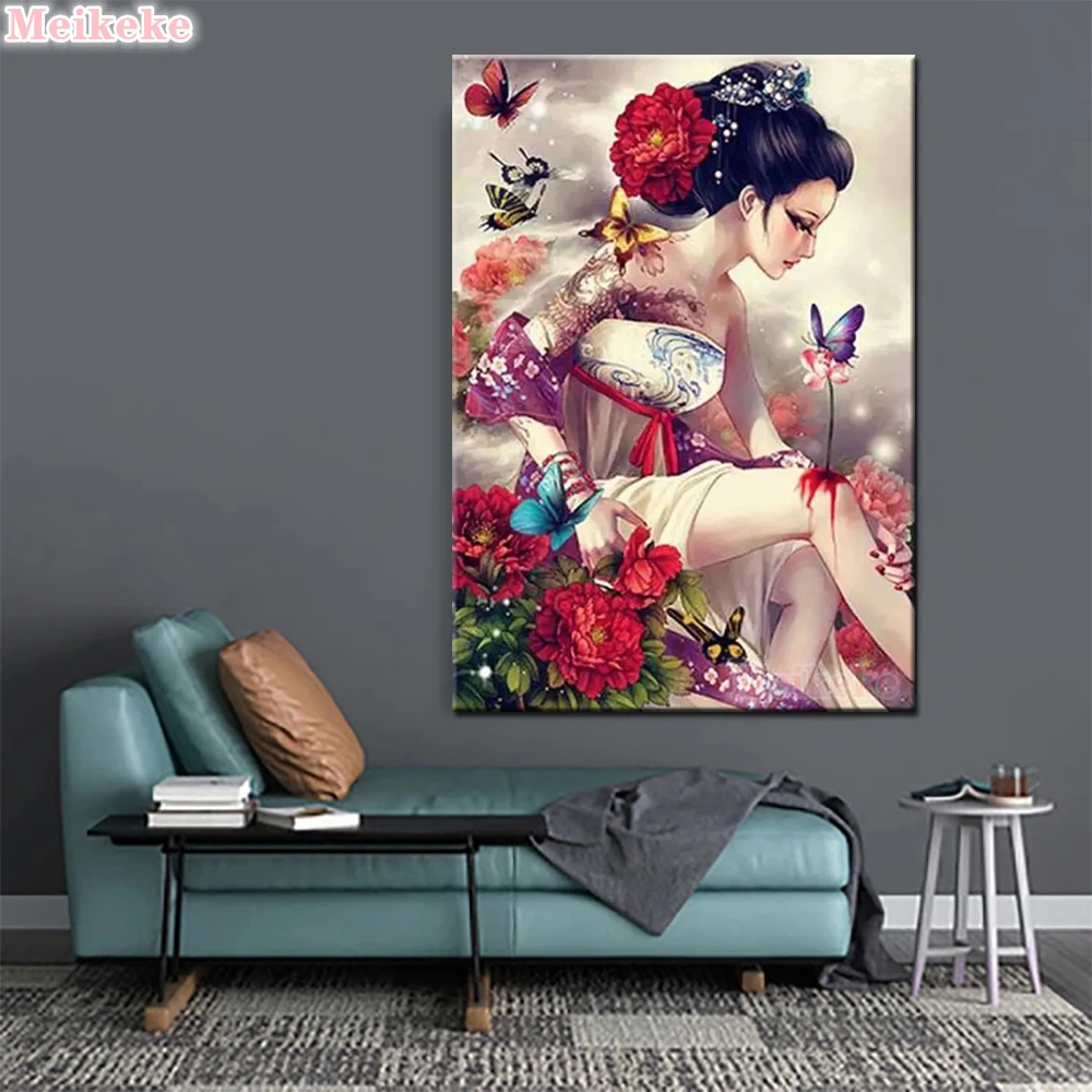5D Diy алмазная живопись кимоно женщина японская гейша Красота 3D Алмазная Вышивка крестом Набор мозаики для имитации вышивки Декор картина ремесла