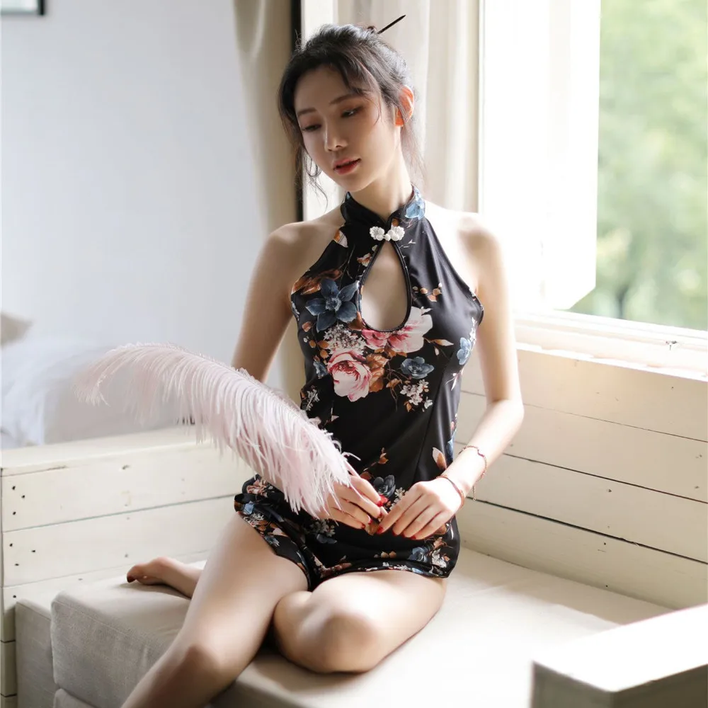 Комплект эротического нижнего белья в китайском стиле, с цветочным принтом