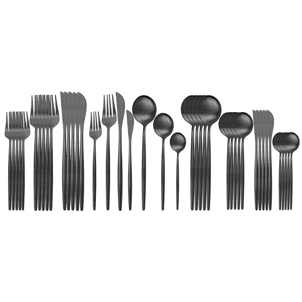 Набор черных столовых приборов, 30 предметов, матовый нож, вилка, н...
