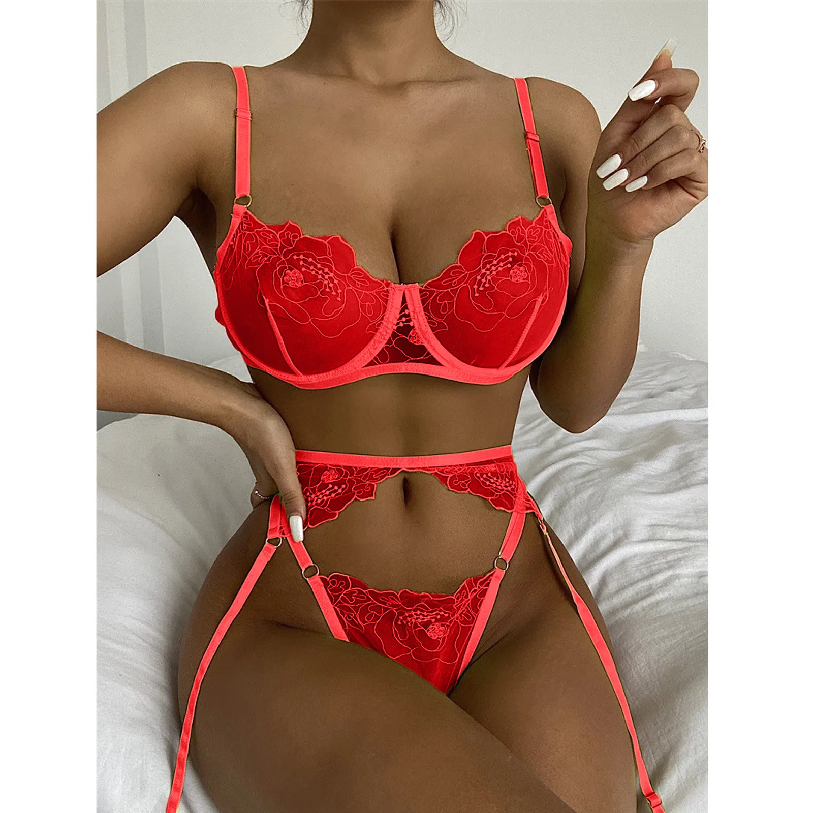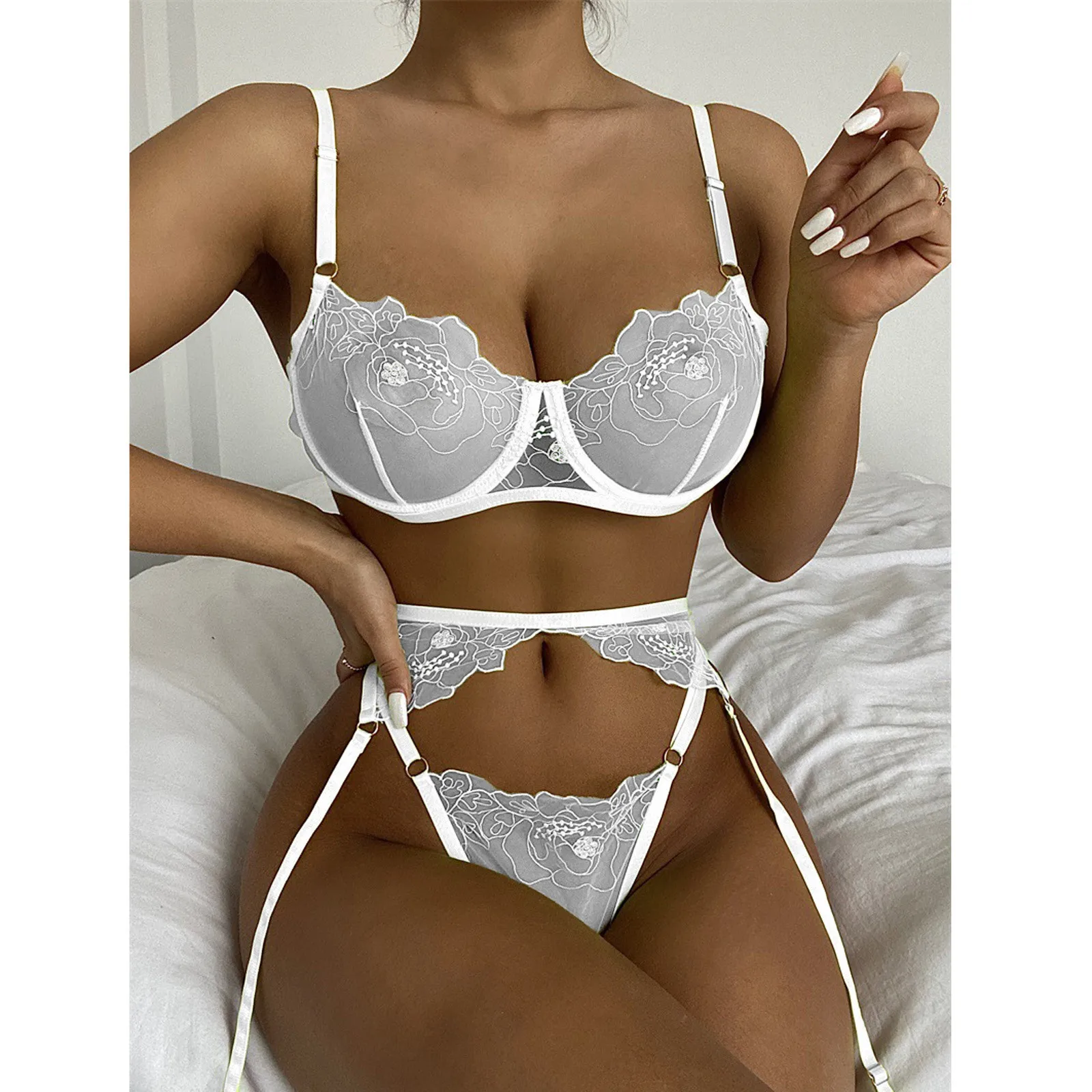 3 шт., эротическое женское нижнее белье, Женский комплект, пуш-ап, кружевной бюстгальтер, стринги, подвязка, сексуальное нижнее белье, комплект, прозрачное эротическое белье, сексуальные костюмы
