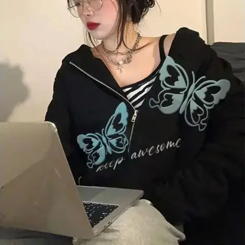 Толстовка с капюшоном в стиле Харадзюку для мужчин и женщин, тонкая худи в готическом стиле, куртка на молнии в стиле панк, верхняя одежда в стиле эмо, лето