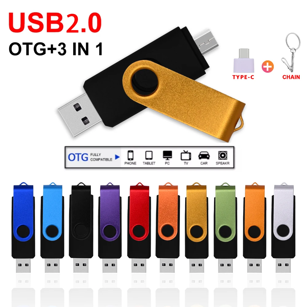 Красочный OTG USB флеш-накопитель Usb 2,0, флеш-накопитель для смартфонов AndroidПК 8 ГБ 16 ГБ 32 ГБ 64 Гб 128 ГБ 256 ГБ, флешка для подарков