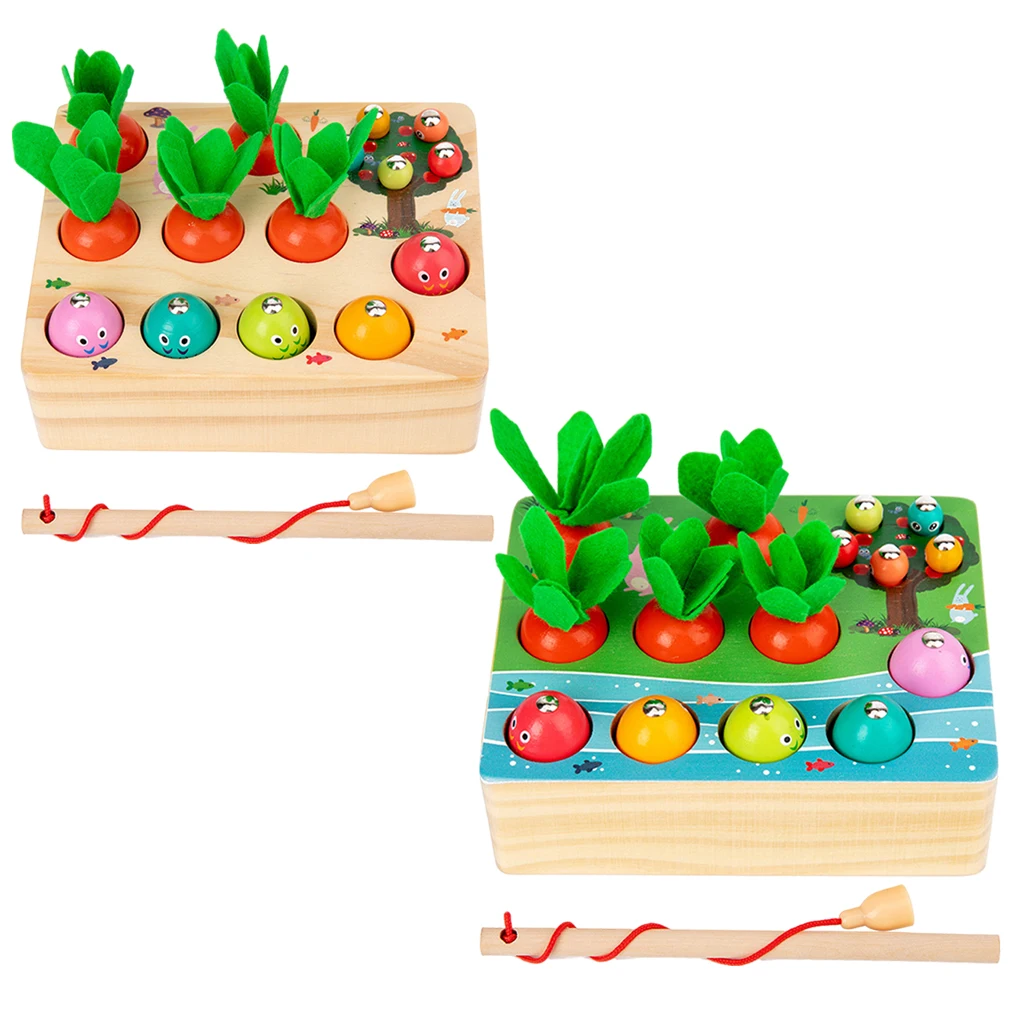 3 в 1 игра: Эта Магнитная игрушка-головоломка включает в себя выщипывание урожая моркови, рыбацкую игру, ловлю червя, 3 игры в 1 игрушки, 2 -5 лет Детям нравится эта игрушка.Обучающая игрушка Изготовлена из прочной деревянной пищи, не легко сломать, без заусенцев, очень прочная. Забавно для детей.Конструкция с гладкой поверхностью на 360 градусов и деликатное ощущение руки не навредят маленьким рукам, гладкие и углами Интимная забота о руках детей, играйте с уверенностью.Тренируйте руки ребенка, координацию рук и глаз, цифровые познавательные способности детей.Идеальный подарок для детей 2-5 лет.