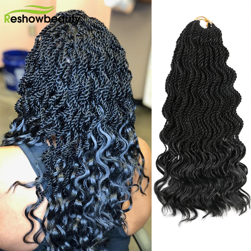 Сенегальские скрученные удлинители волос, искусственные локоны, син...