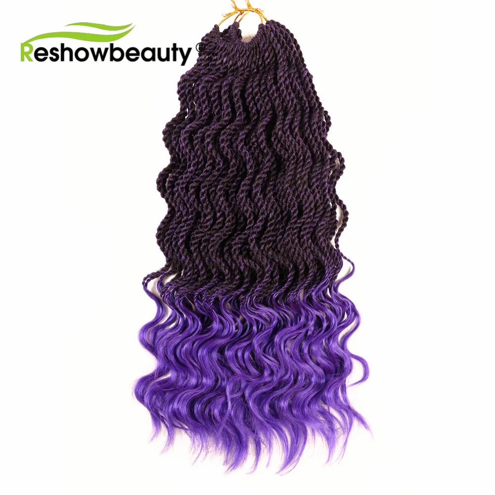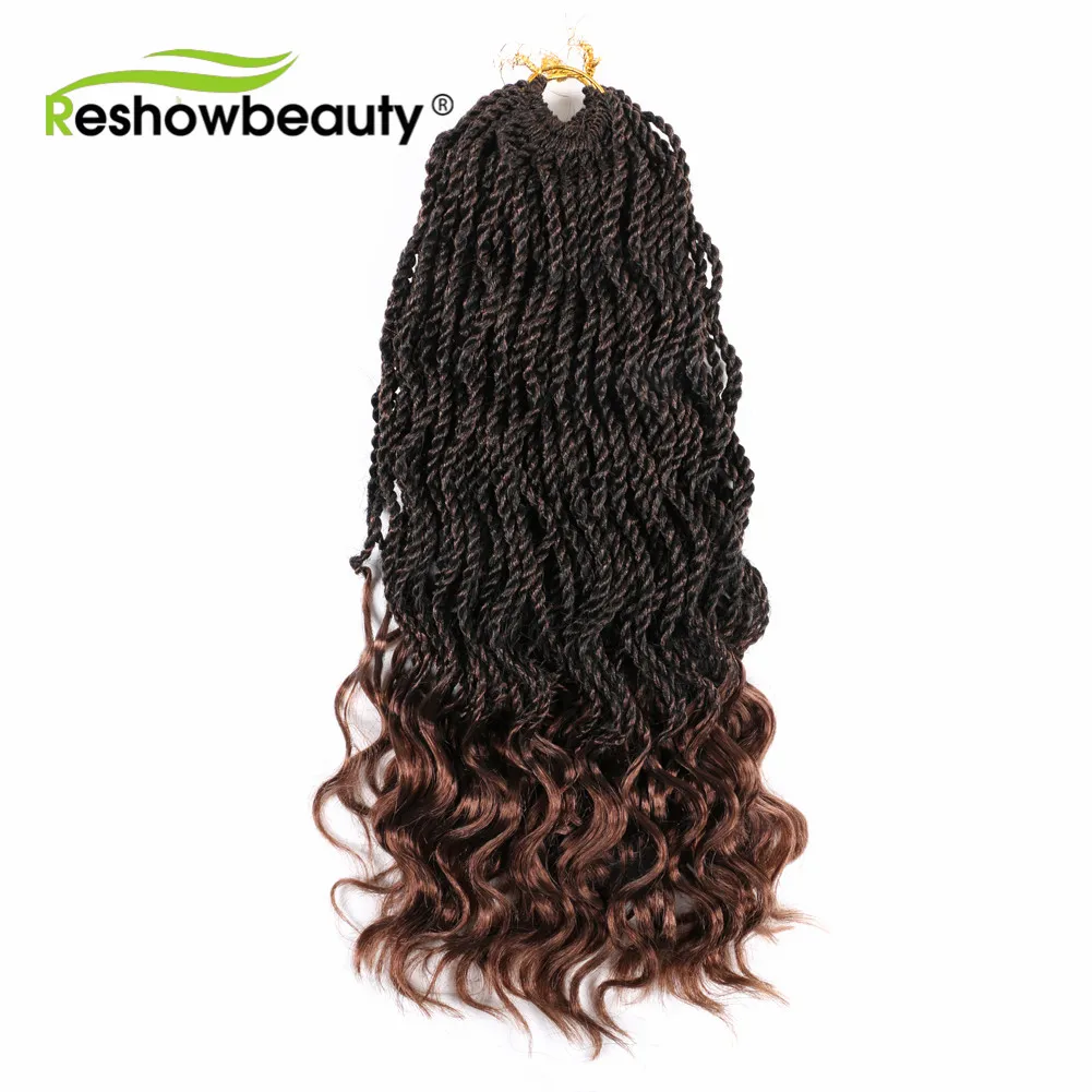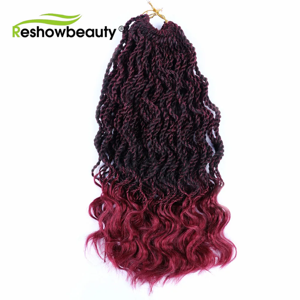 Синтетические удлинители волос, волнистые Сенегальские косички с кудрявыми концами, Омбре, цветные вязаные косички для богини для женщин, 35 нитейупаковка