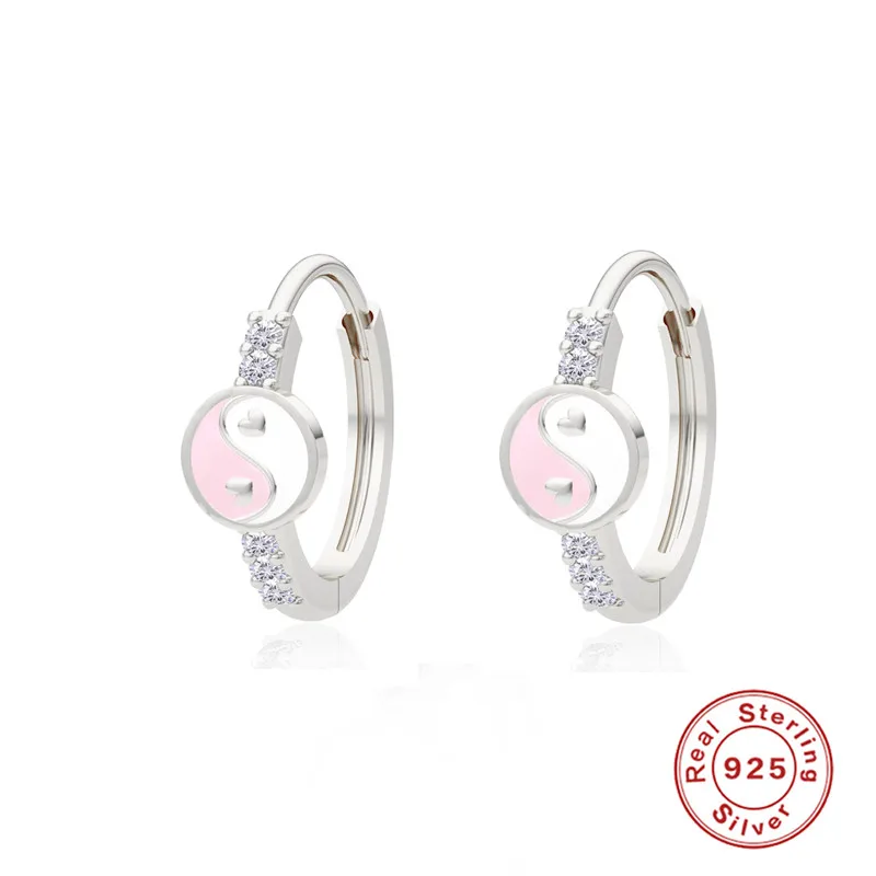 Женские эмалированные Серьги Viny Yin Yang, фиолетовые и розовые серьги из серебра, модные ювелирные украшения 2021