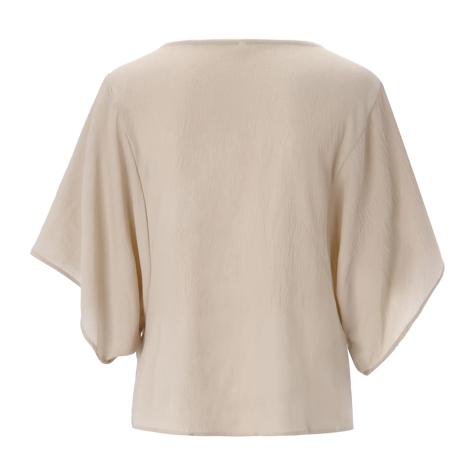Женская Офисная рубашка, винтажная элегантная мягкая Блузка с V-образным вырезом, повседневная, для лета, 2021