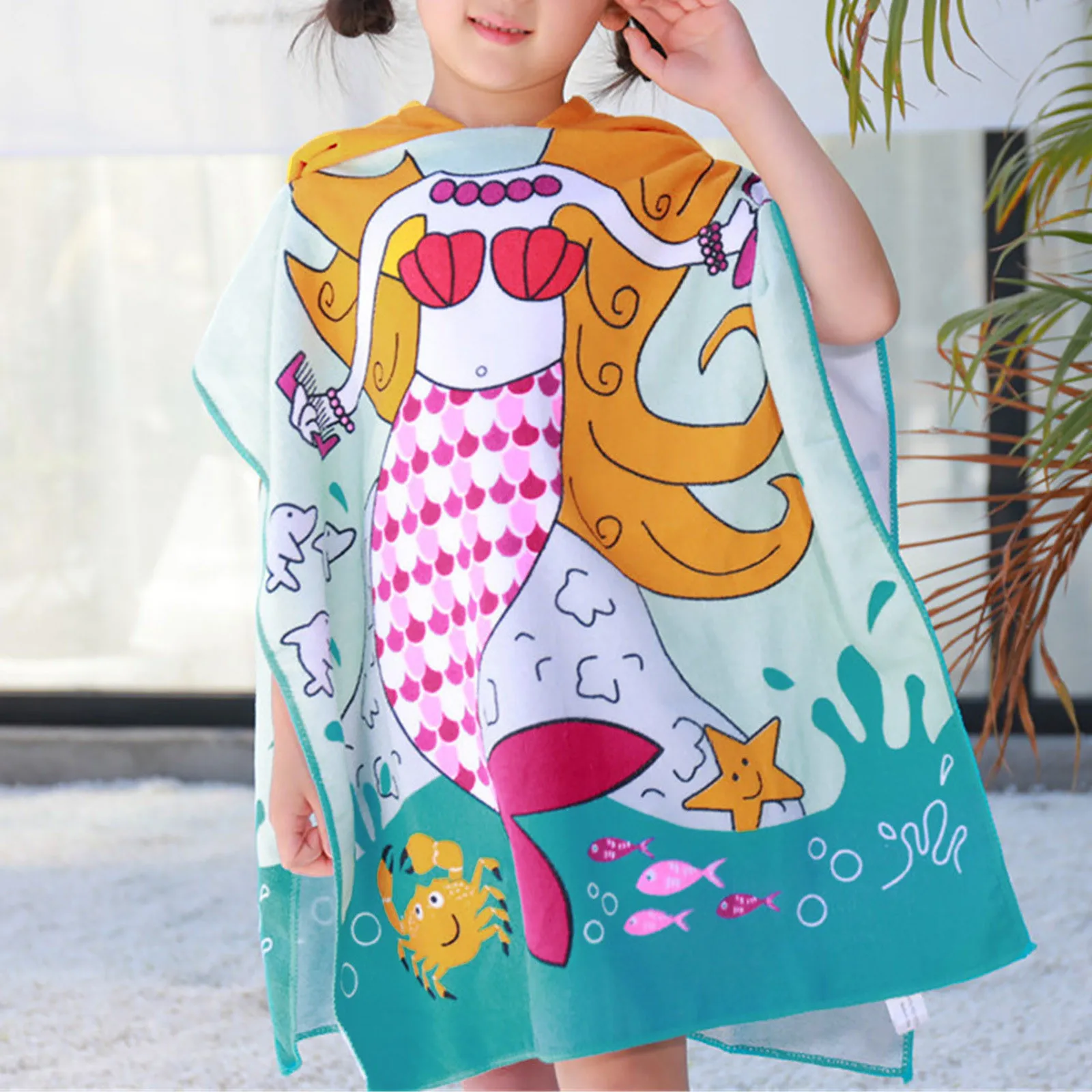 Полотенце-пончо для детей, спортивный банный халат с капюшоном в виде динозавра, русалки, детский халат для серфинга и бассейна, плавательные полотенца для маленьких девочек и мальчиков