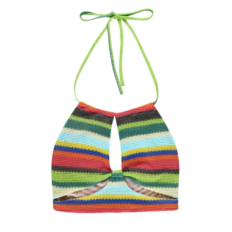 Женский короткий топ на бретельках, с цветным принтом, 21177