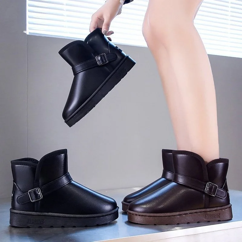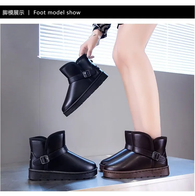 Новинка 2021, зимние водонепроницаемые теплые женские ботинки из искусственной кожи на плоской подошве, размеры 36-44