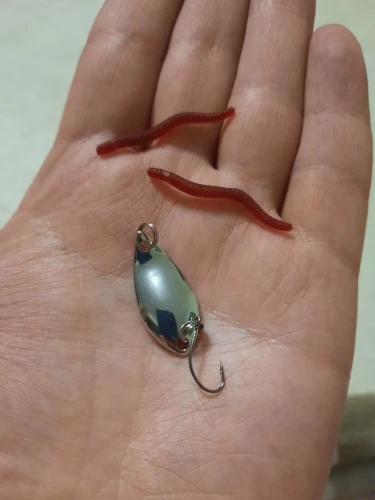 маленькие прикольные блесенки.продавцу спасибо за быструю отправку и маленький призент)))мелочь а приятно))) (2 силиконовых червячка)