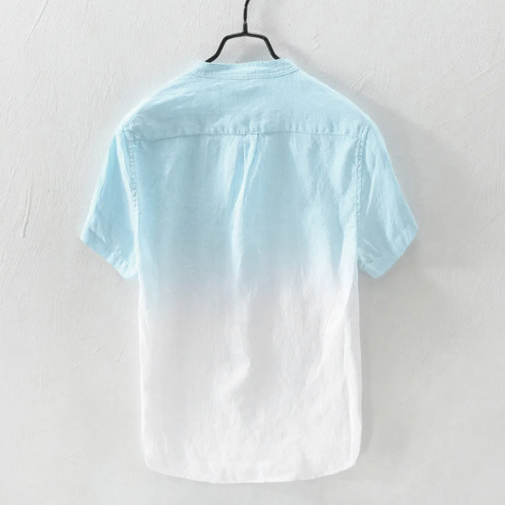 Летняя мужская рубашка, крутая и тонкая дышащая рубашка с воротником, градиентная хлопковая Гавайская свободная пляжная рубашка на пуговицах 3