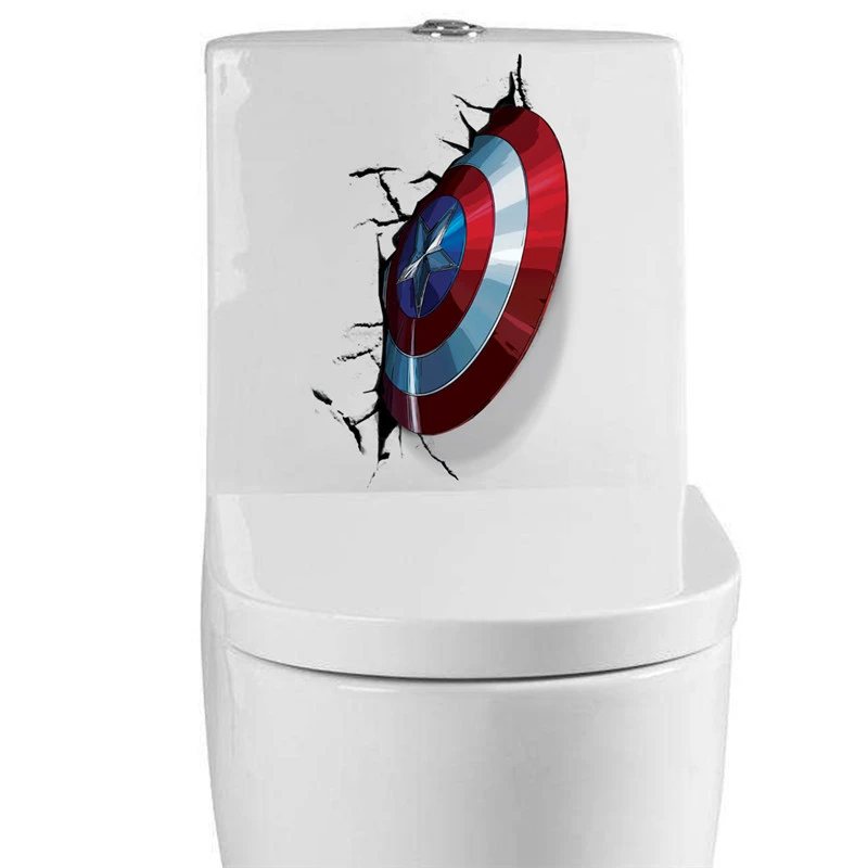 3D наклейки на стену Капитан Америка, наклейки на стену для детской комнаты, декор для туалета, наклейки на стену мстители, художественные настенные плакаты из ПВХ