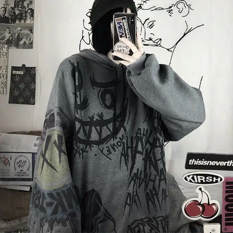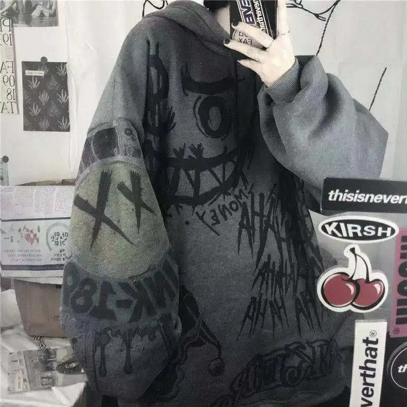 Женская толстовка FERNAN, Готическая Толстовка с длинным рукавом, в японском стиле, в стиле хип-хоп, большого размера