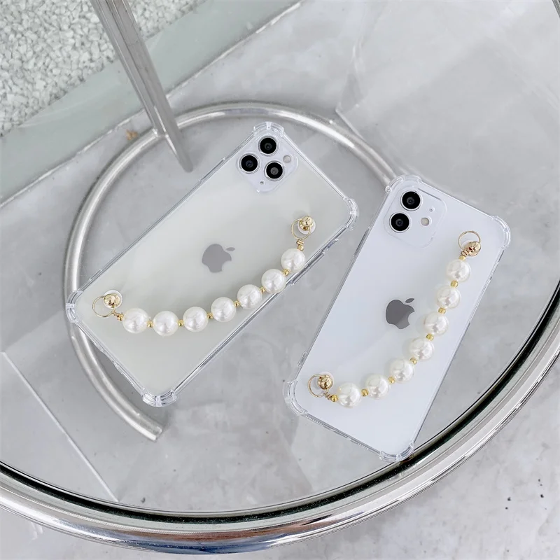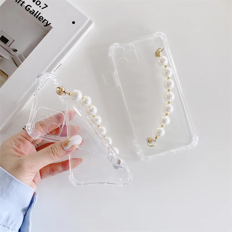 Чехол с жемчужным браслетом Для Xiaomi POCO M3 X3 NFC Redmi Note 9S 10S 9 10 8 8T 9A 9C 8A 7A 7 Pro, прозрачный мягкий чехол с цепочкой на запястье