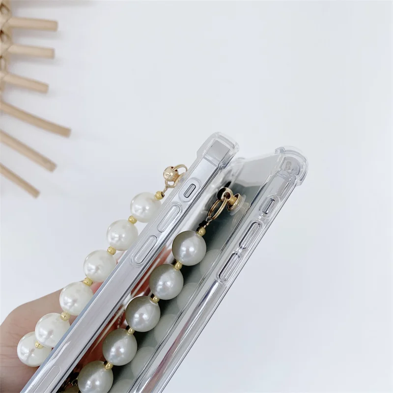 Чехол с жемчужным браслетом Для Xiaomi POCO M3 X3 NFC Redmi Note 9S 10S 9 10 8 8T 9A 9C 8A 7A 7 Pro, подвесная цепочка на запястье, прозрачный мягкий чехол