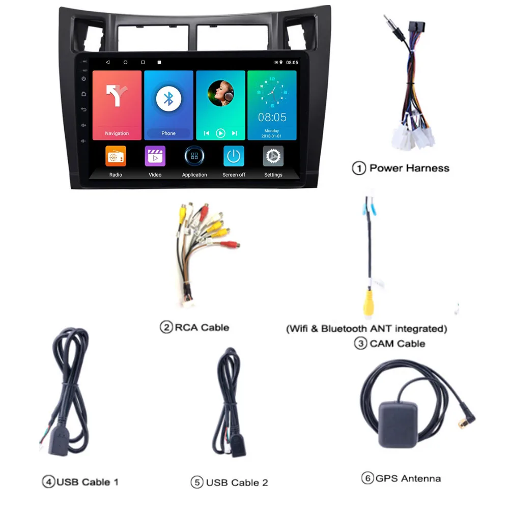 1 х Toyota Yaris Android автомобильное радио1 х Кабель питания1 x Антенна GPS1 x вход камеры1 х RCA вход и выход2 x USB кабельРуководство по эксплуатации-1 шт.