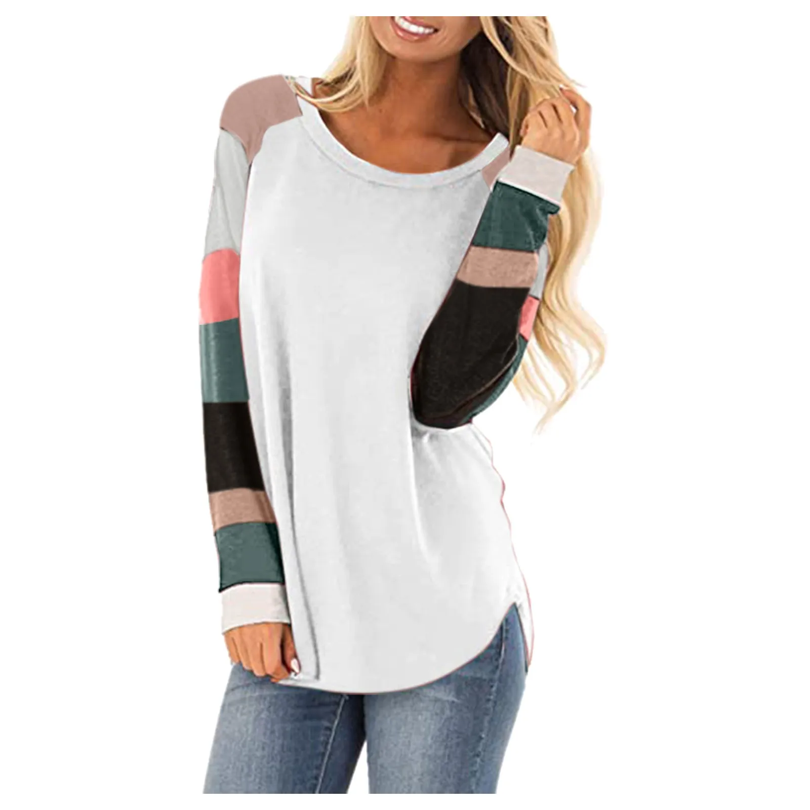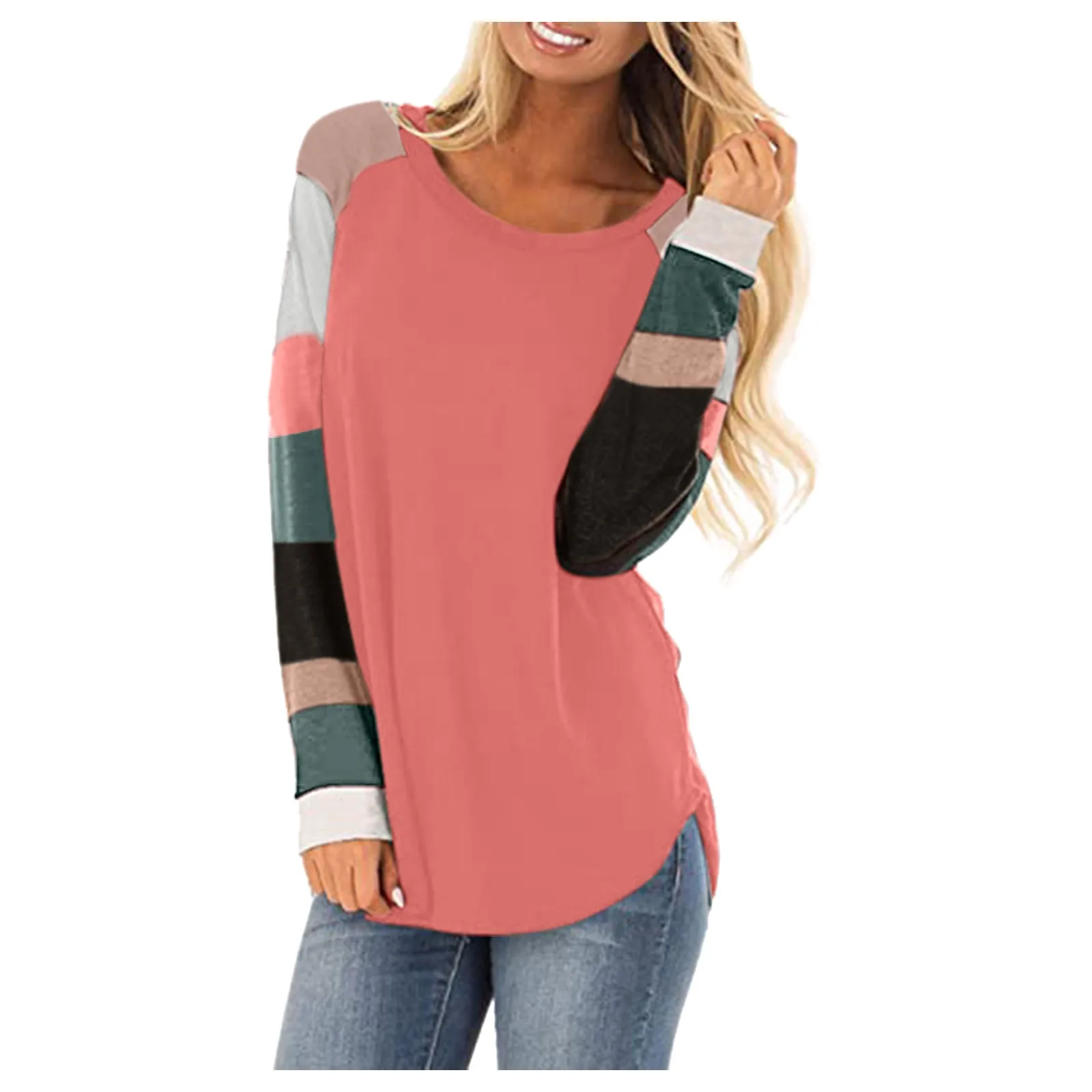 Женская футболка с длинным рукавом и круглым вырезом, однотонная св...