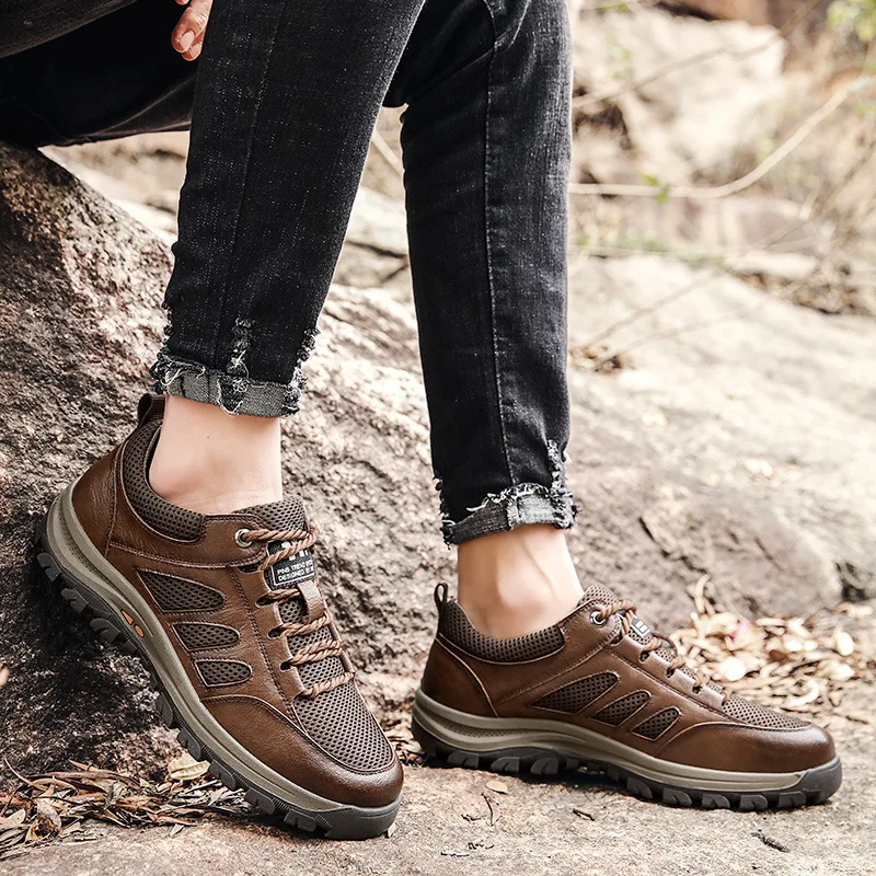 Мужские уличные спортивные туфли, коричневые дышащие кожаные туфли,...