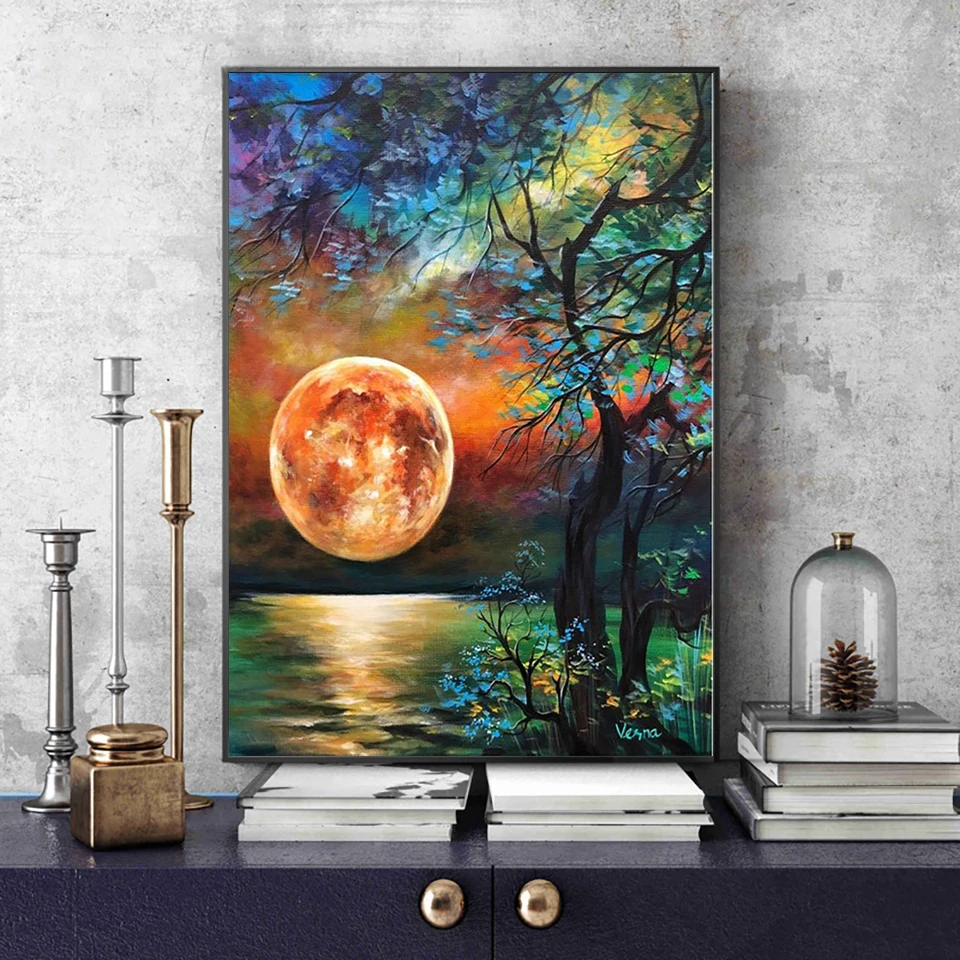 Квадратнаякруглая луна отражение 5D DIY Искусственный ландшафт Алмазная вышивка крестом Набор для украшения