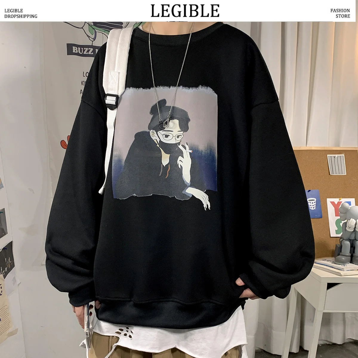 Мужские свободные толстовки с круглым вырезом, в стиле Харадзюку