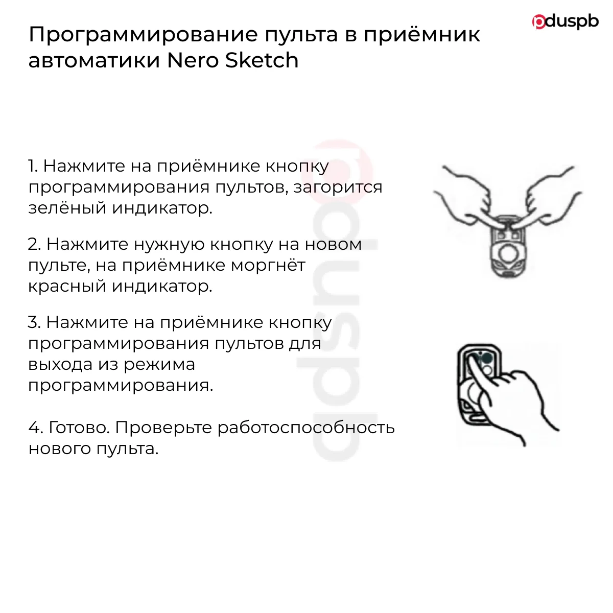 Программирование пультов в приёмник автоматики Nero Sketch (в общем виде):