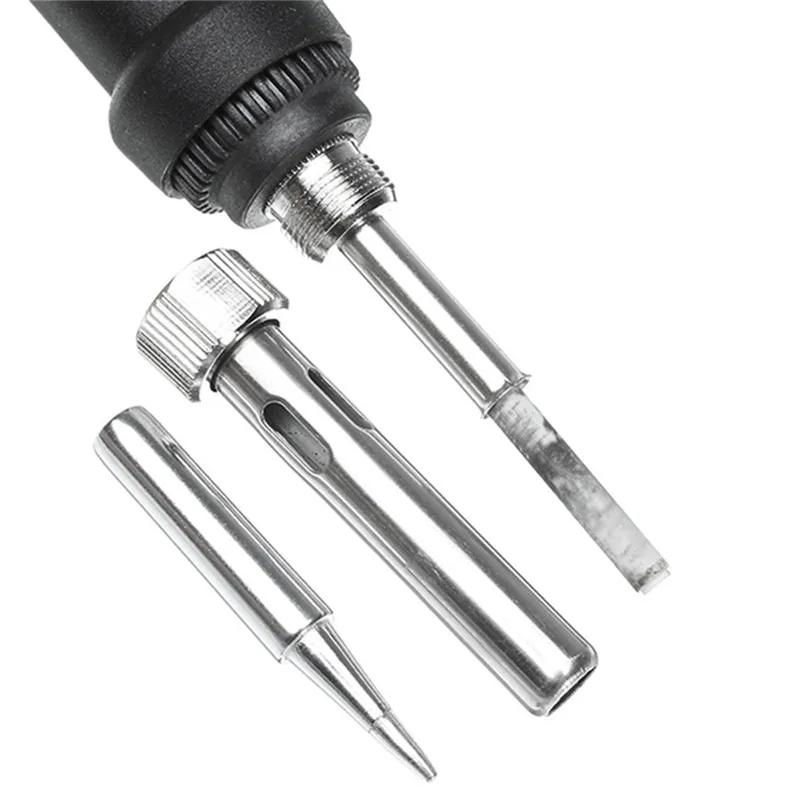 Особенности: Быстро нагревается: благодаря быстрому нагреву и быстрому термовосстановлению для обеспечения высококачественной пайки. Диапазон температур: 100 ~ 480 ℃ для использования с постоянной температурой со встроенной цифровой схемой управления мини-процессором для критического контроля температуры. Регулируемая температура: Установите желаемое значение для удовлетворения ваших потребностей в пайке. Конструкция верхнего температурного датчика: наконечник с быстрой индукцией температуры может резко уменьшить явление температурного падения сварочного сопла в процессе работы, подходит для бессвинцовых технологических процессов. Новый дизайн: новейшая конструкция ручки для рассеивания тепла, удобное ощущение руки при длительном использовании, запатентованная конструкция нажима на хвостовой ручке более безопасна для пайки. ЖК-Дисплей: ЖК-цифровой дисплей для четкого отображения температуры. Конструкция наконечника Plug-pull: Простота установки и замены наконечников, экономия времени и эффективность. Более безопасная и стабильная работа: печатная плата имеет двустороннее позолоченное покрытие. Легкий и портативный размер: вы можете начать пайку в любом месте в любое время, не чувствуя усталости в течение длительного периода работы. Более длительный срок службы с высоким качеством: термоизолированная и Нескользящая силиконовая ручка обеспечивает комфортную и безопасную работу. Примечание: Пожалуйста, не обращайтесь с металлической частью наконечника паяльника при включении питания. Пожалуйста, выключите питание во время отдыха между использованием или завершенной пайкой. Характеристики: Цвет: серый Материал: термостойкий пластик + нержавеющая сталь + силикон Тип вилки: ЕС/США (опционально) Входное напряжение: 220 В (ЕС) / 110 В (США)/230 В (Австралия) Выходное напряжение: 220 В (ЕС) / 110 В (США) (50/60 Гц)/230 В (AU) Мощность: 90 Вт (макс. 145 вт) Дисплей: ЖК-дисплей с подсветкой Диапазон температур: 100 ~ 480 ℃ Стабильность температуры: ± 10 ℃ Тип нагрева: внутренний нагрев Паяльное сопло: серия 900 м Нагревательный элемент: фарфор с принтом 220 В/110 В Длина провода: 1,4 м/55,12 дюйма Размер паяльника: прибл. 210*25*25 мм/8,27*0,98 * 0.98in Вес паяльника: прибл. 130 г/4,57 унции (ЕС) / 117 г/4,13 унции (США) Размер посылка: прибл. 32*9,5*5,3 см/12,60*3,74 * 2.09in Вес посылка: прибл. 187 г/6,60 унции (ЕС) / 176 г/6,17 унции (США) Посылка тация: 1 Электрический паяльник 1 * Руководство пользователя