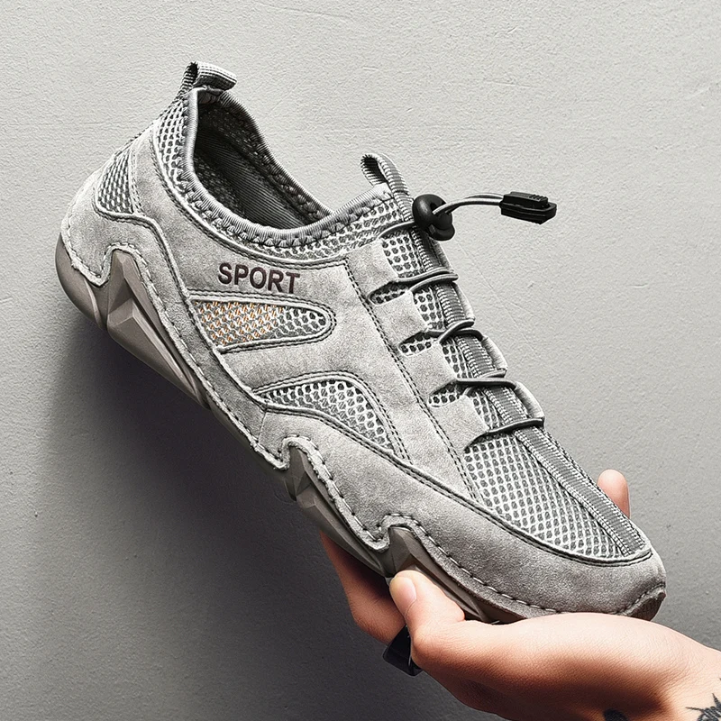 Мужские летние кроссовки из натуральной кожи, сетчатые дышащие кеды...