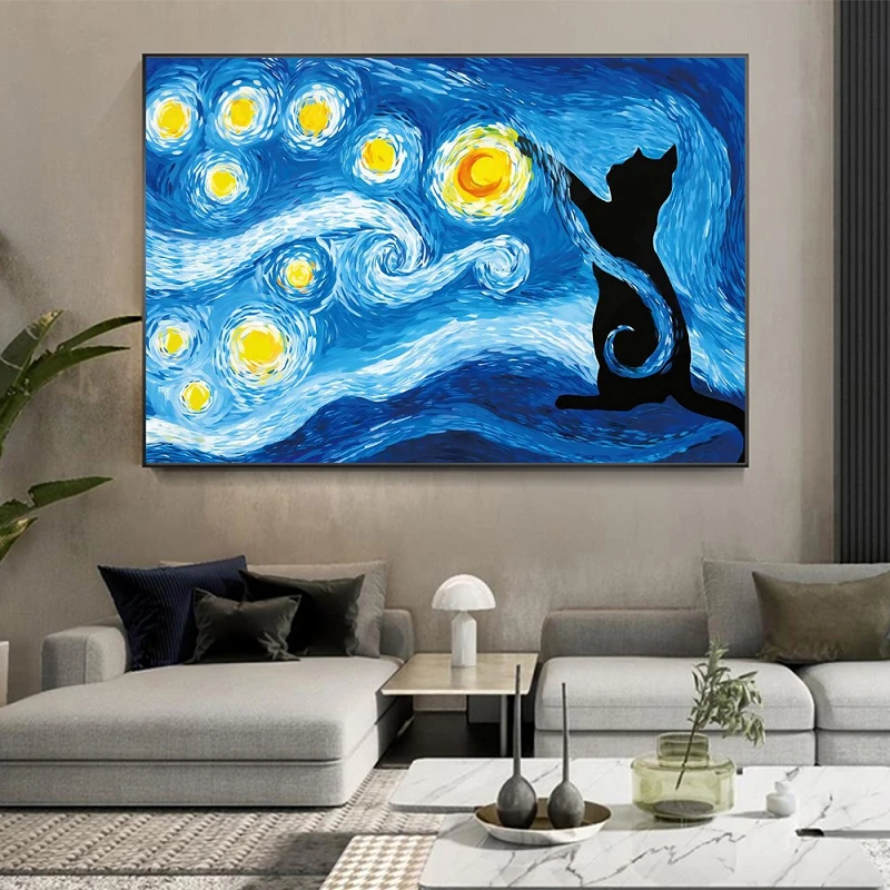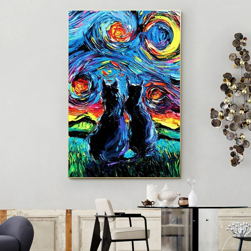 Абстрактное искусство, классические картины, смешные Кошки под Ван Гогом, звездное небо, украшение для дома, картины на холсте для декора гостиной